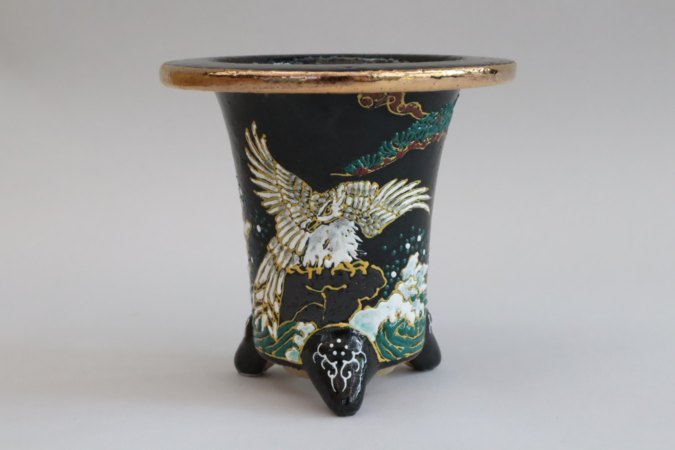 2025.6.23 希少 1点限り 万年青鉢楽焼は天正年間(約400年前)に始まる日本独特の焼き物です。楽焼は《急熱急冷》という特殊な焼成方法をとります。急熱急冷だから、鉢に細かな 微細な穴ができ、通気を良くしています