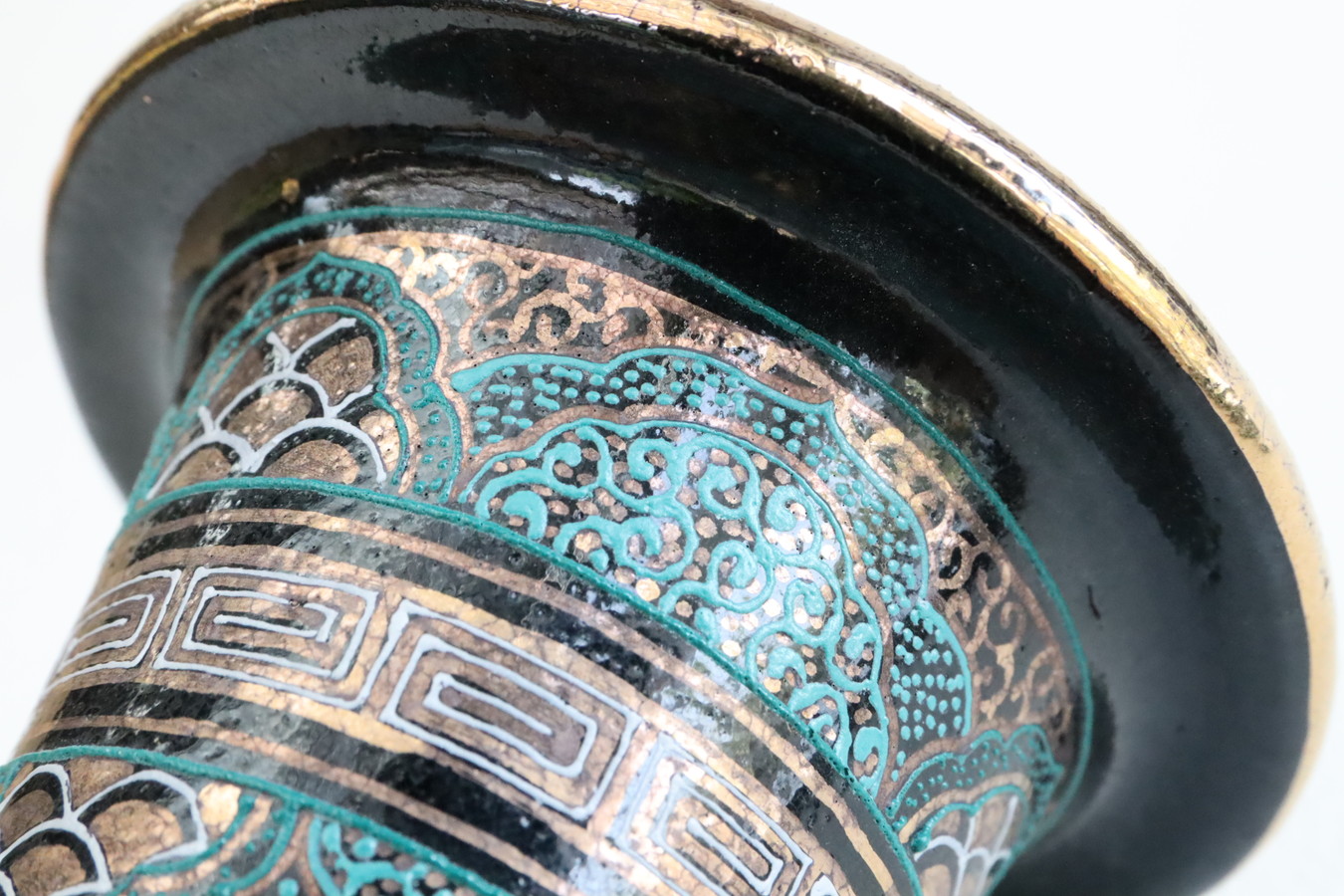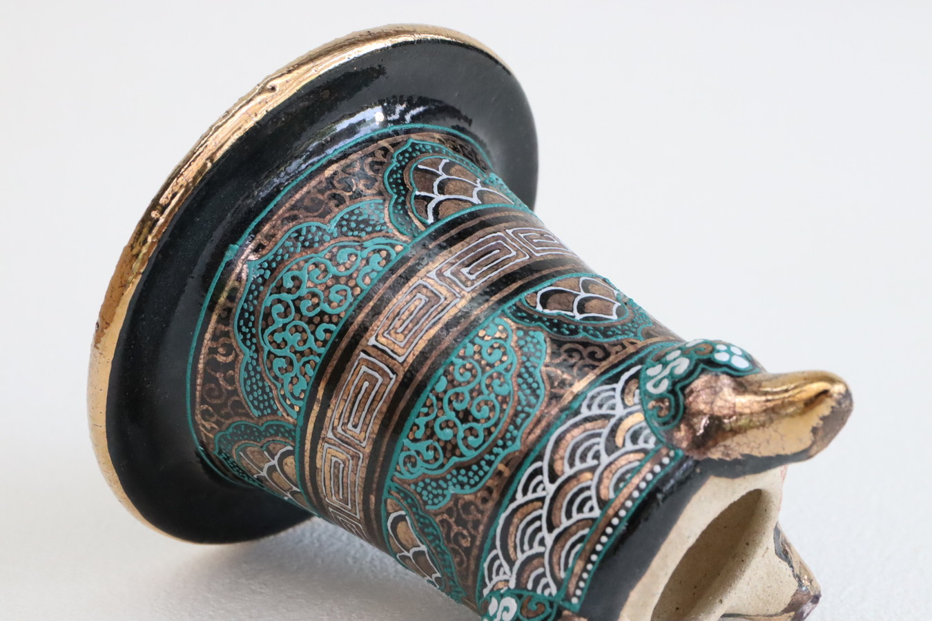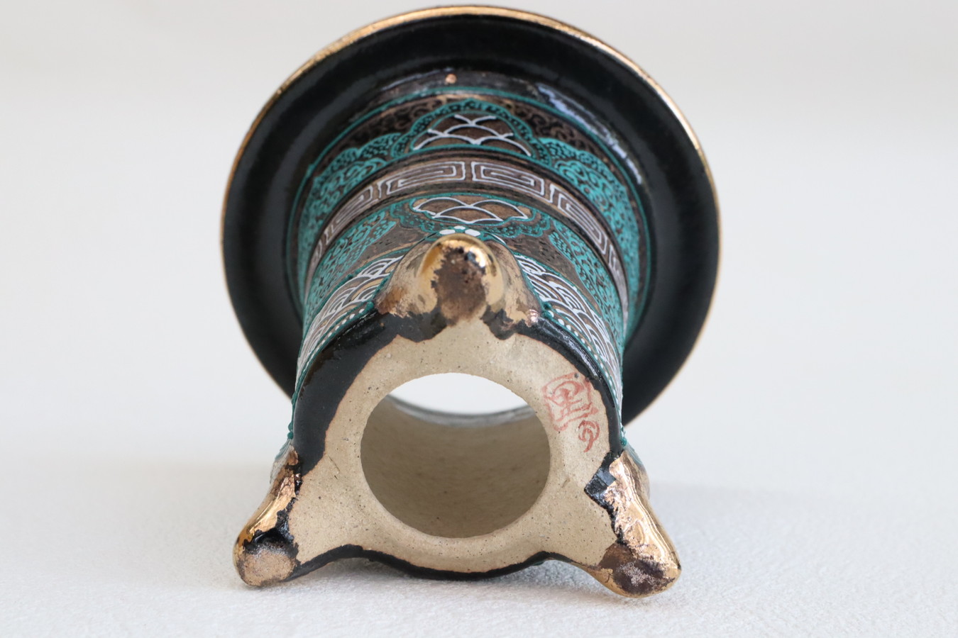 2283,加茂黒傑作 五龍雷紋唐草青海 萬年青楽鉢 外径約9.7cm 里サイン