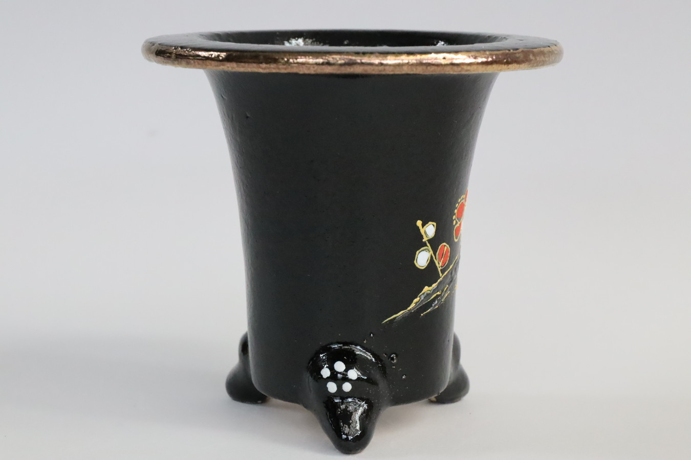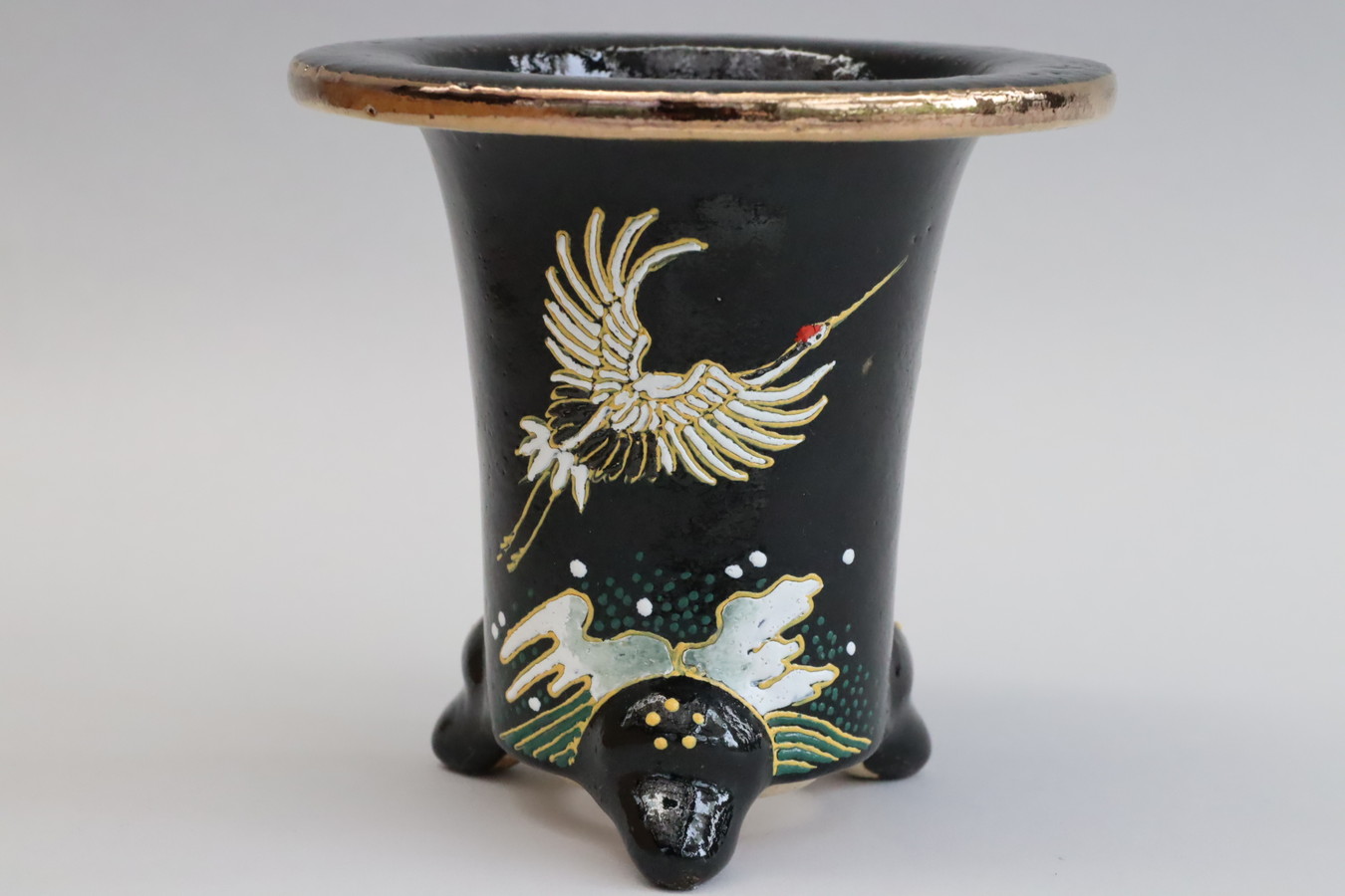 1点限り 万年青鉢楽焼は天正年間(約400年前)に始まる日本独特の焼き物です。楽焼は《急熱急冷》という特殊な焼成方法をとります。急熱急冷だから、鉢に細かな 微細な穴ができ、通気を良くしています
