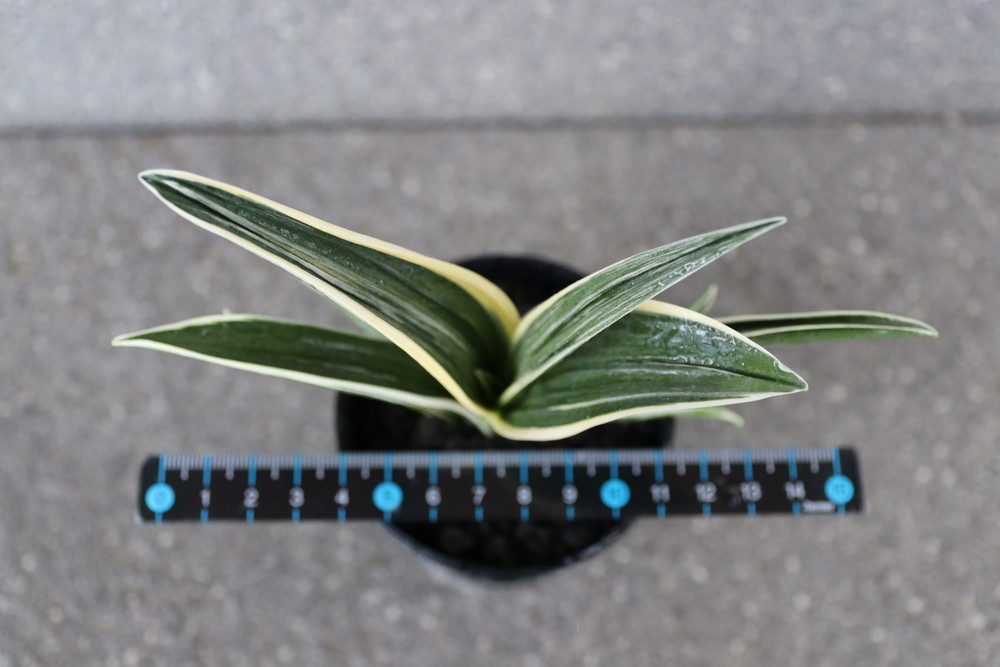 晃明殿の実生で、その素晴らしい総雅糸竜と、きりりとした葉姿を受け継いでいる。晃明殿の素晴らしさをそのまま羅紗おもとにしたような凛々しさあふれる品種。
