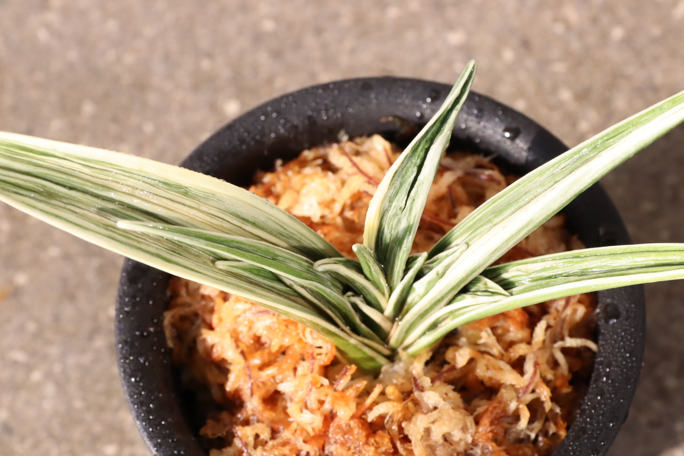 葉先に向けて鋭くなる、とても葉肉の厚い葉に、繊細な総雅糸竜をのせる