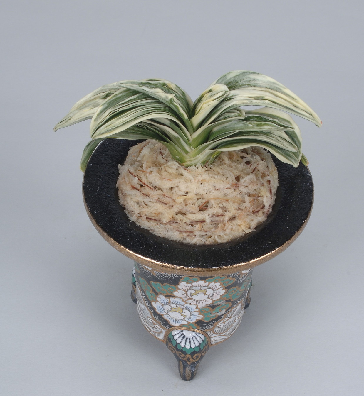 芸も強い系統、丈夫な品種 愛玉殿は昭和5年からの非常に古い木なので、この木のように芸の良い本性と、多産系、芸の抜けたものなど沢山ある。古くは有志が本性以外の万年青を公の目の前で焼いて、この芸のよい本性だけを残そうとしたが未だに残っていてる。本性は殖えにくく、非常に少ない
