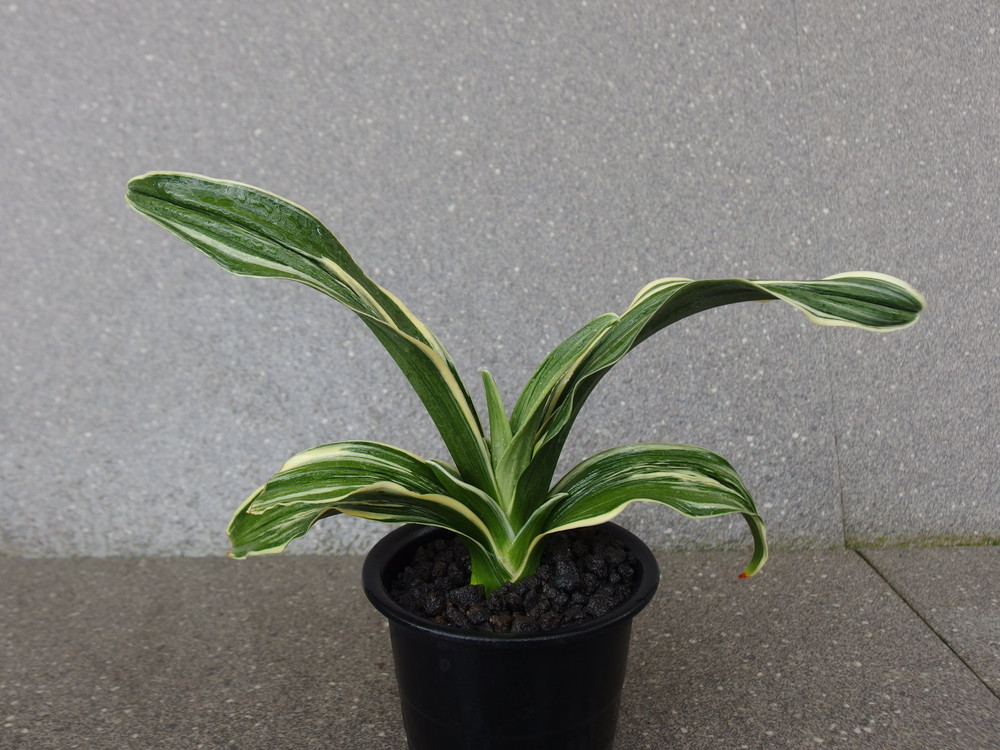 太陽:今の万年青界四天王とも言われる人気品種であり、最高の実親で、岳陽を生み、羅紗の実績は多数。実親もたくさん産んでいる。親が錦麒麟と福寿龍という素晴らしい実親なので、錦麒麟型、福寿龍型のような実生もみせる