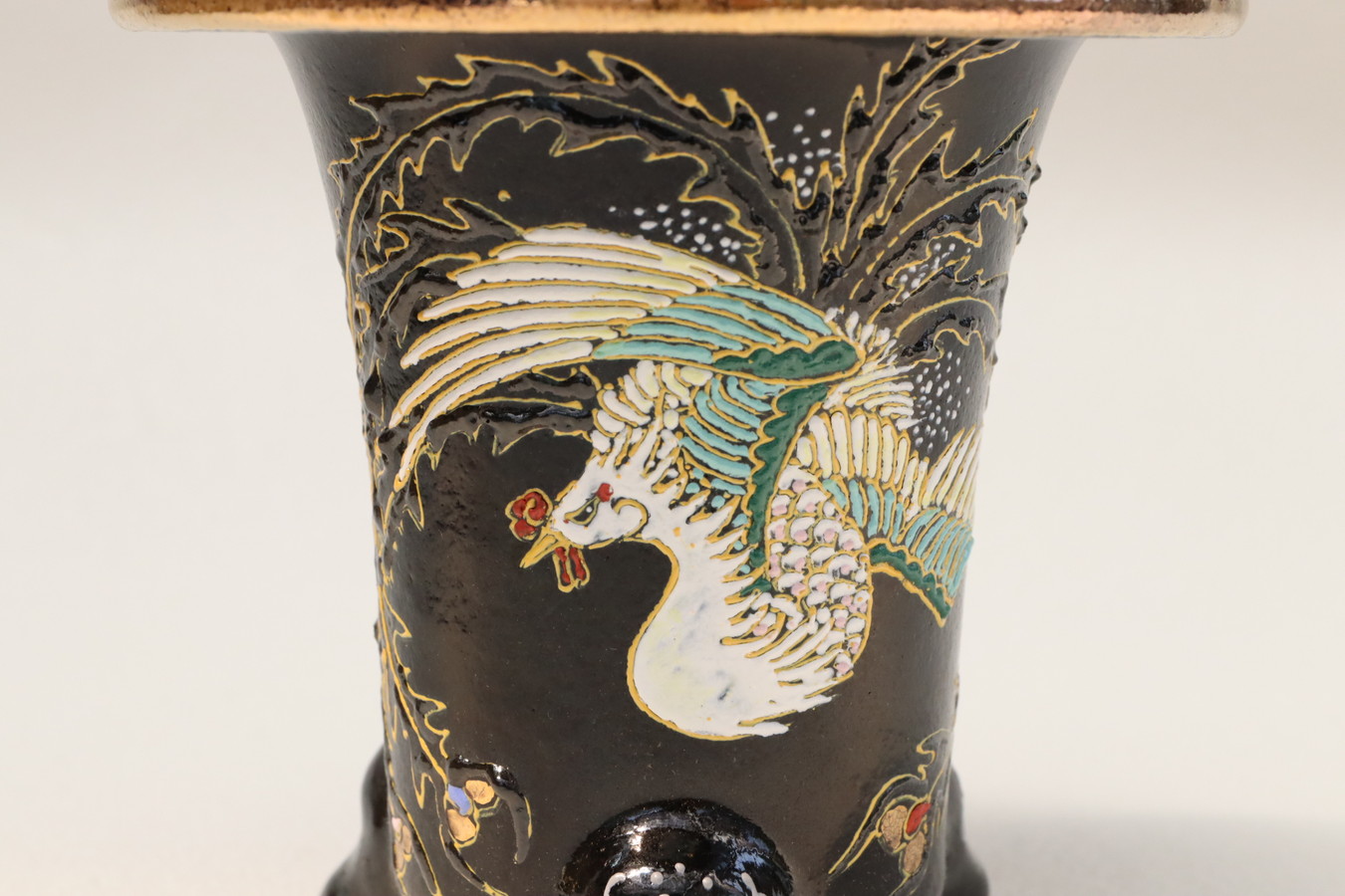 3009,黒胴 鳳凰 楽鉢 外径約11.7cm 亘サイン