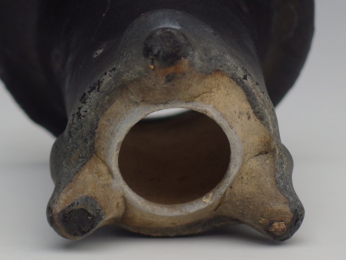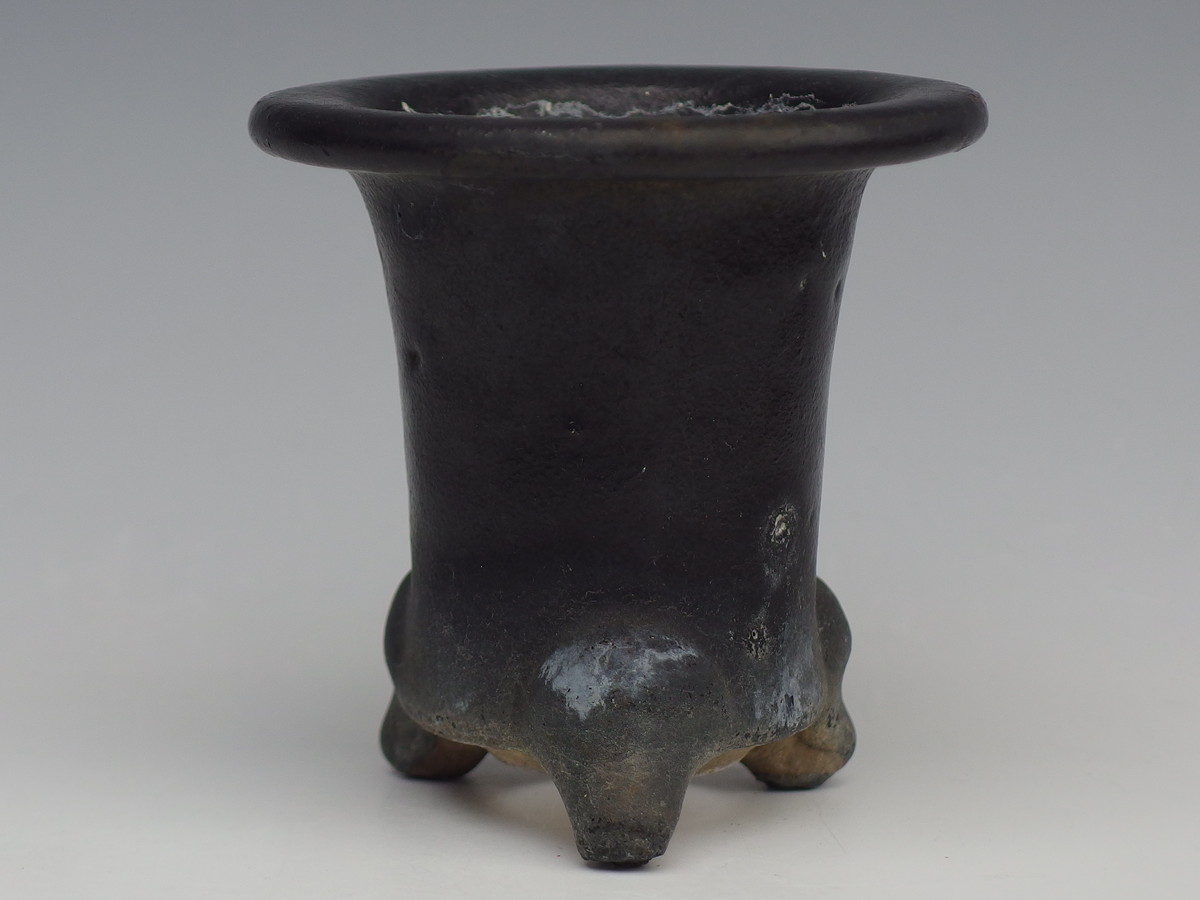 2021, 古鉢黒鉢 古代万年青楽鉢 外形約7.8cm 中古カケ