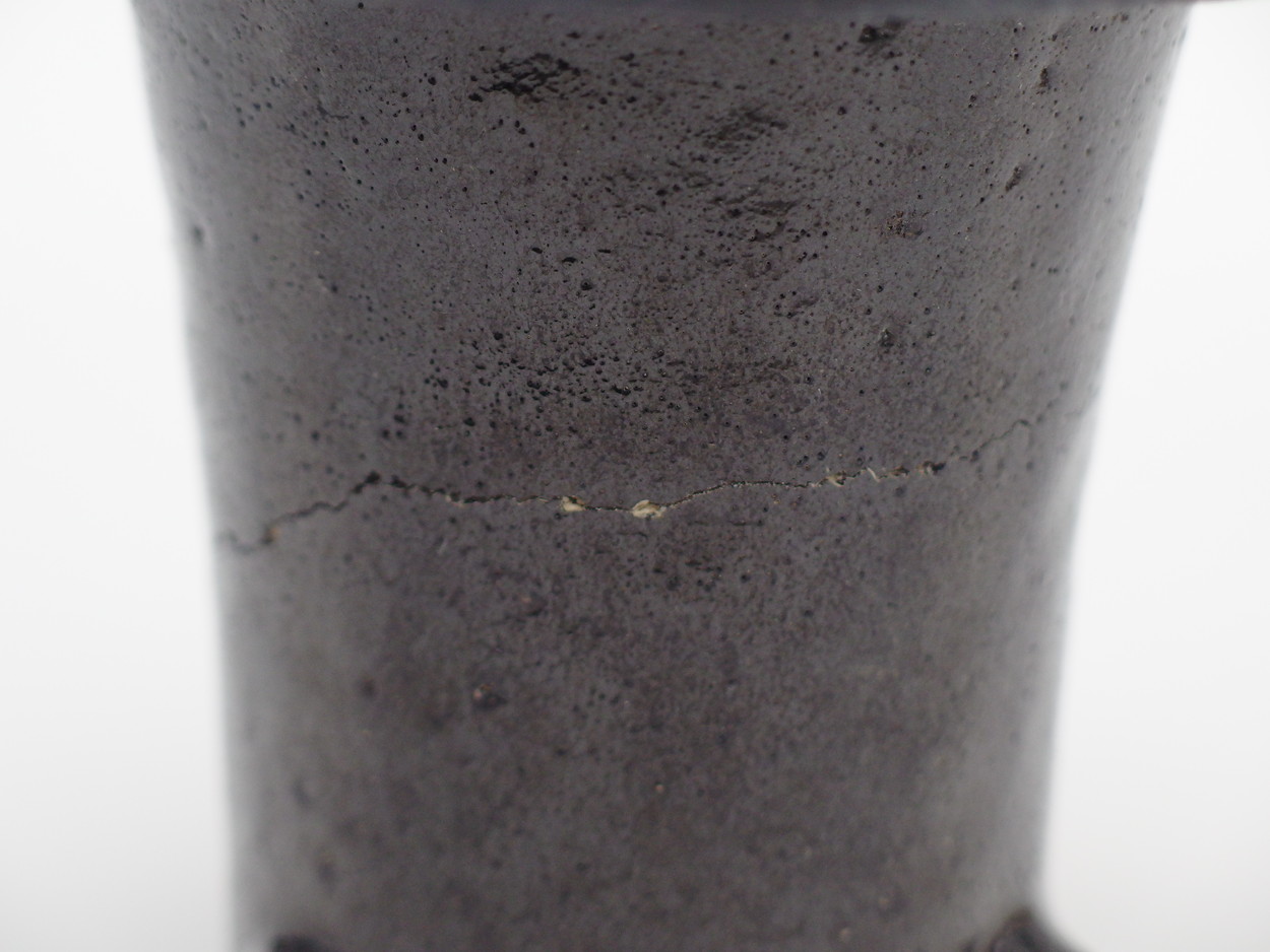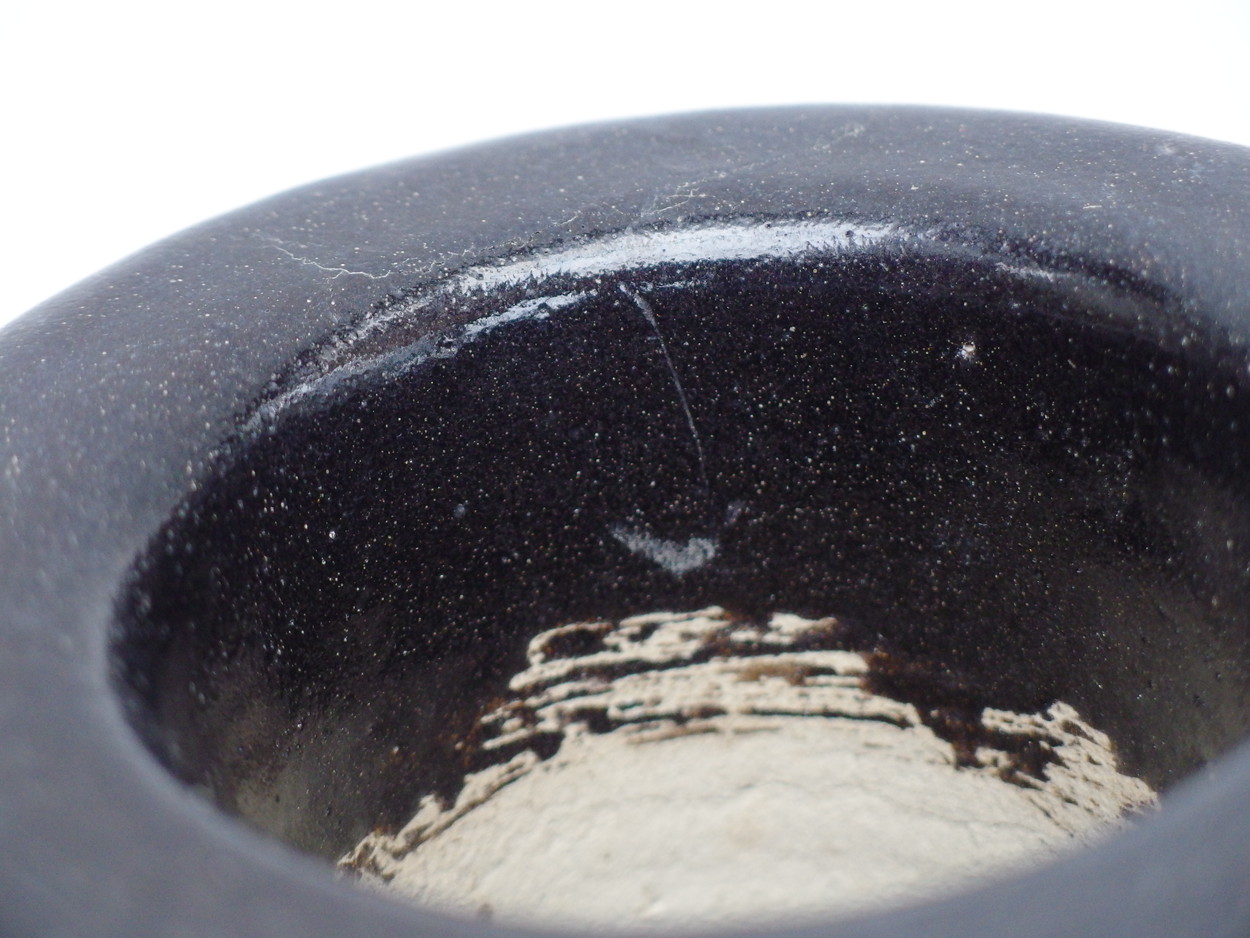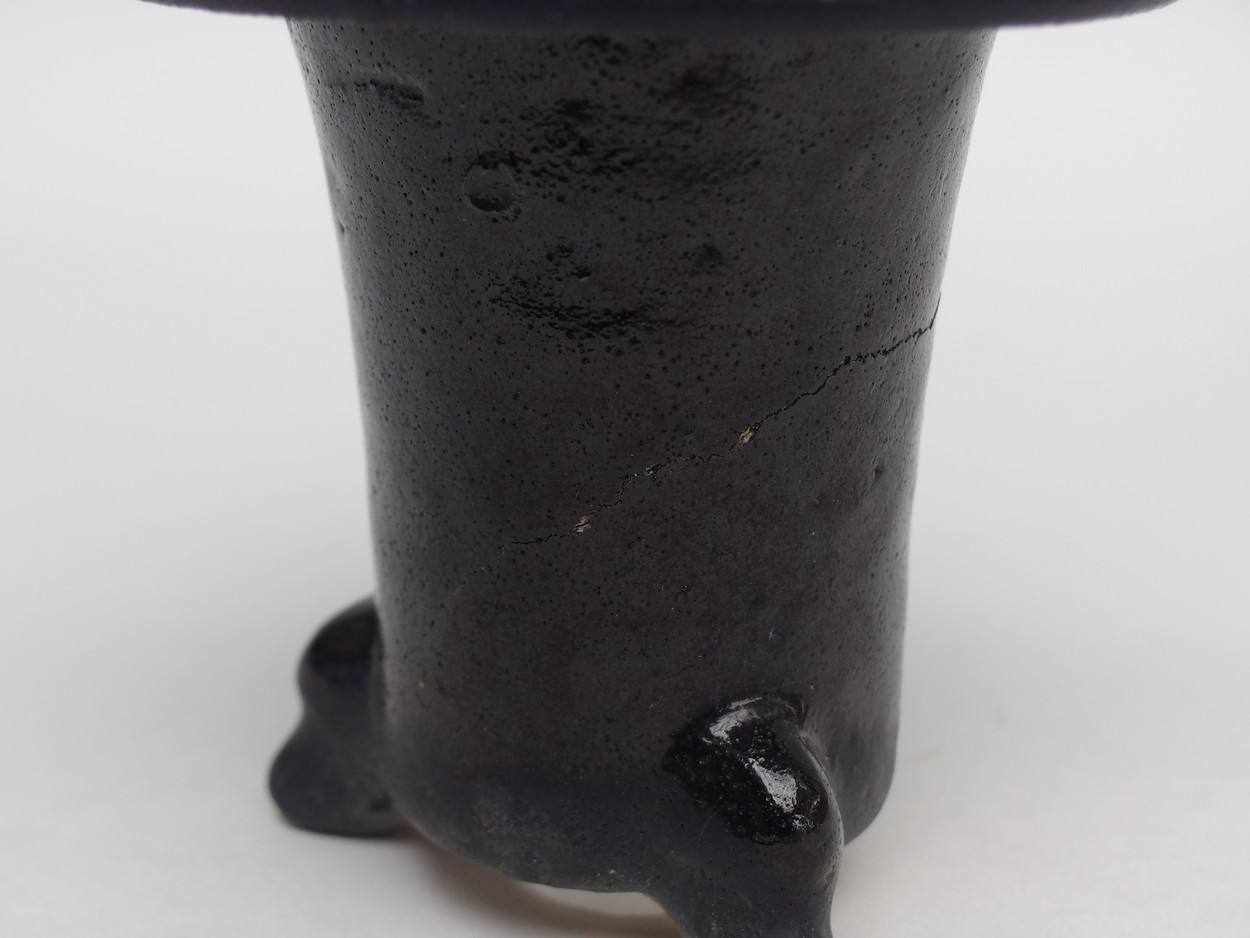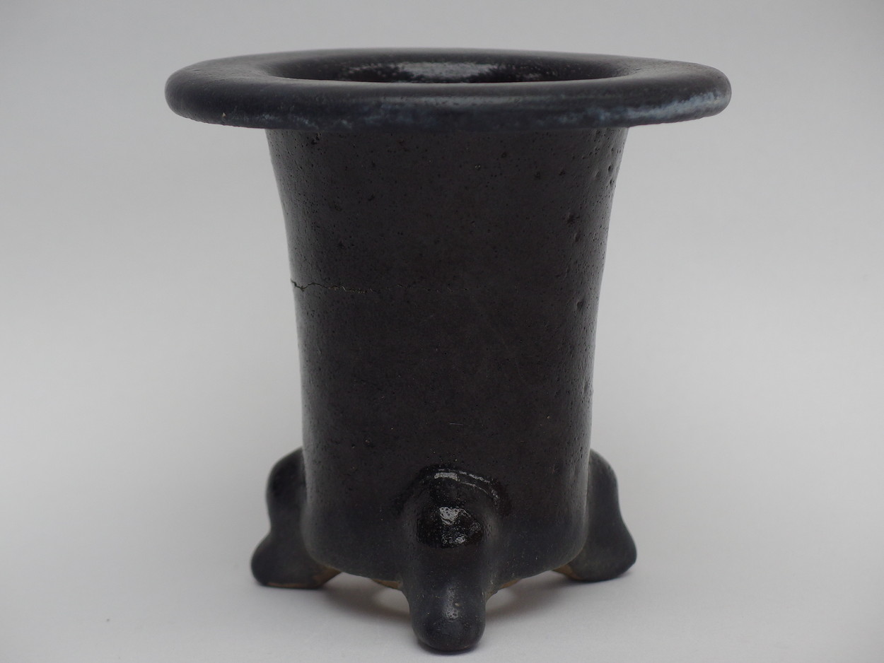 2068, 古鉢 黒鉢 萬年青楽鉢 外径約11.3cm ヒビ 中古