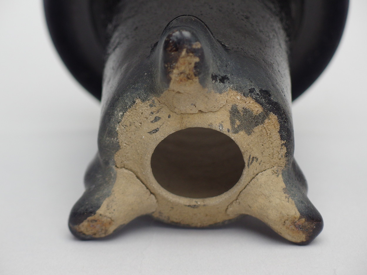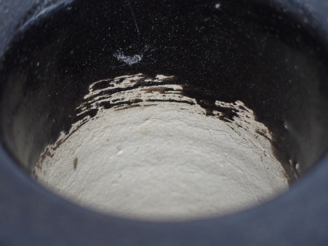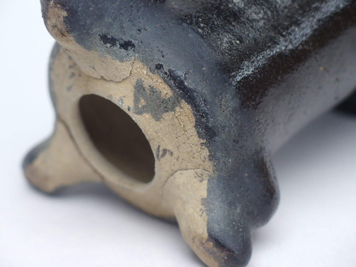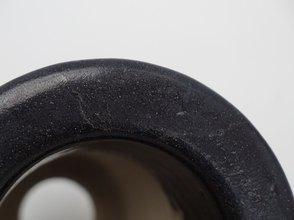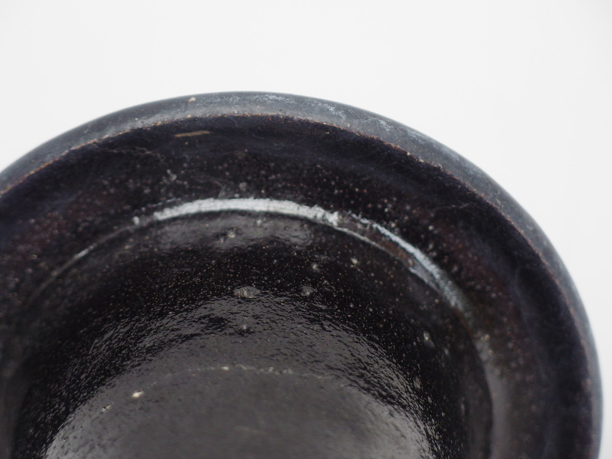 2068, 古鉢 黒鉢 萬年青楽鉢 外径約11.3cm ヒビ 中古