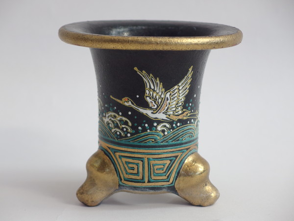 2213、 月に夫婦鶴 外径約11.2cm 中古