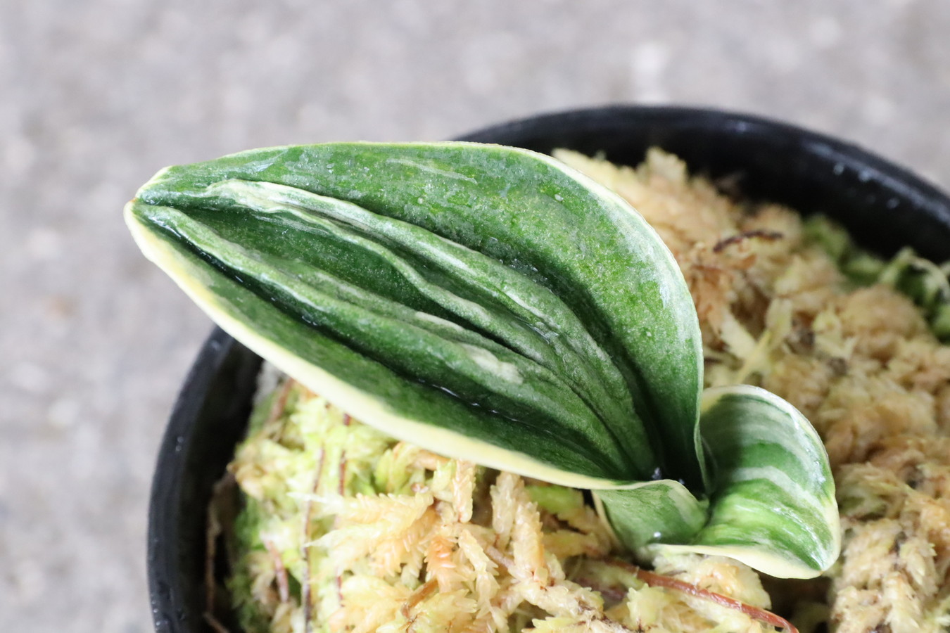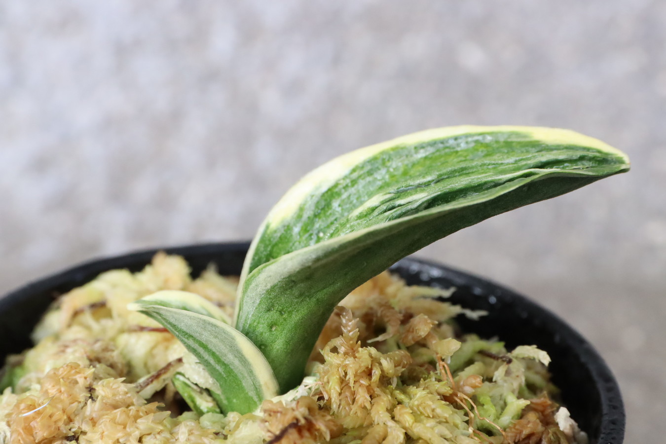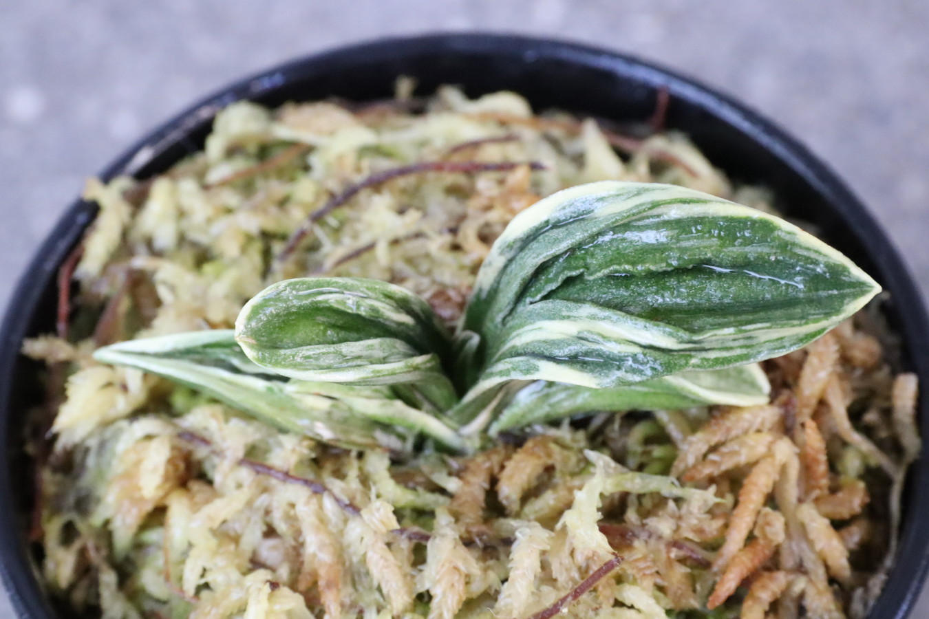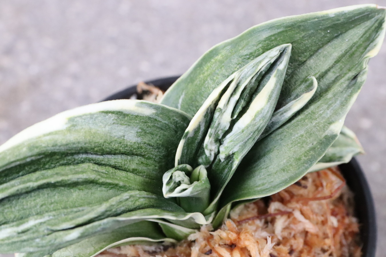 この品種の魅力は、「力和」でしか味わえない芸、丸葉の可愛らしい姿、その変化と、たくさんあります。杉山力蔵氏と岡田和吉氏が共有したため、『力和実生』と呼ばれ親しまれてました。昭和48年に待望の覆輪が完成。実生時代から常に人気で、三河地方では当時100万円以上の値が付いて、喧嘩するほどの奪い合いだったそうです(豊明園2代目談)。