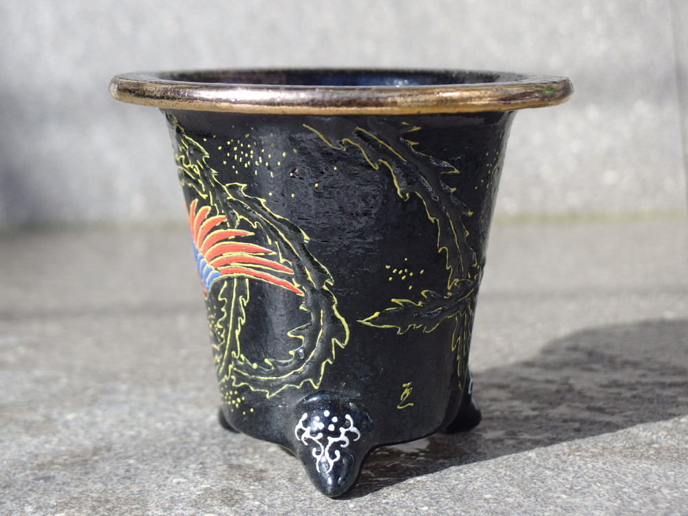 2310,鳳 万年青カバー鉢 外形約11.3cm 高さ約9.1cm カバー鉢