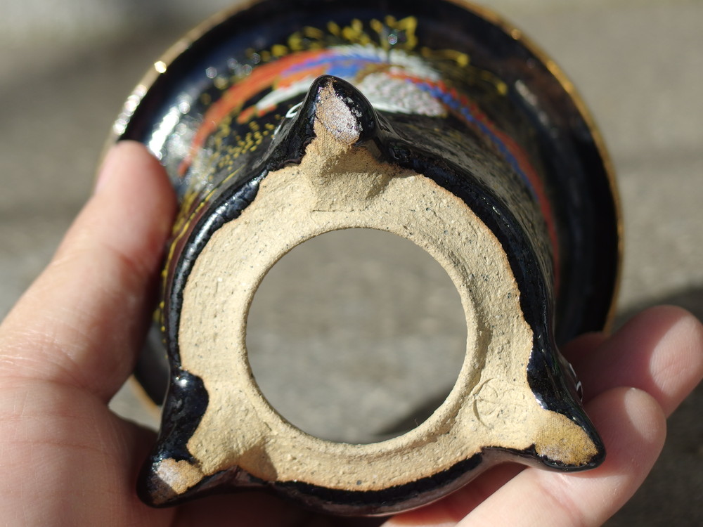 代々お付き合いのある窯元と試作を重ねてきましたが、焼き物の特性上、寸法は土、季節、その日の天気、湿度によっても変わり、自然に大きく左右されます。本当に腕がある作家さんがやってもこの寸法は時の運で、普段の鉢製作と比べてもロスは大幅に出てきます。それでも、この錦鉢で万年青を楽しむのは徳川家康公が万年青を楽しむ以前からと言われています。そんな日本の万年青の楽しみを是非多くの人に味わっていただきたく、なんとかここまで漕ぎ着けました。手に取っていただいて、万年青と錦鉢を楽しんでください。