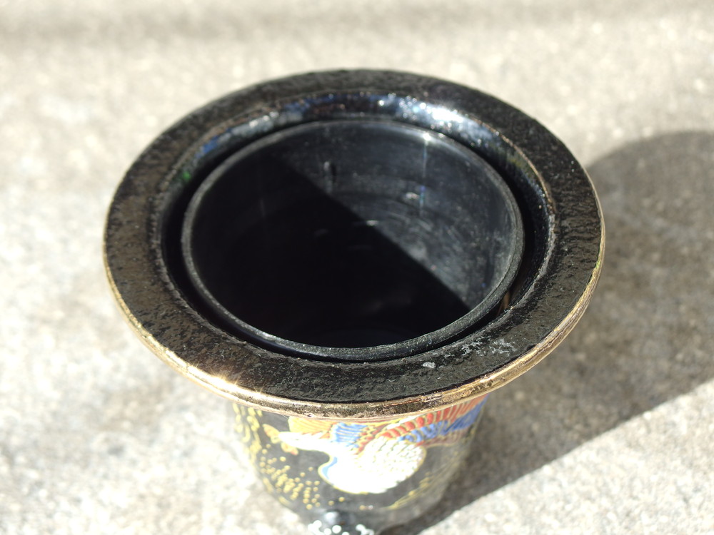 それが今回の鉢です。プラ鉢の万年青をすぽっとはめれる様にしてあり、お水やりの際は錦鉢から抜いてプラ鉢だけ水をあげます。そのため、お水や肥料が鉢について汚れることが無くなり、鉢は常に綺麗な状態をキープできます。