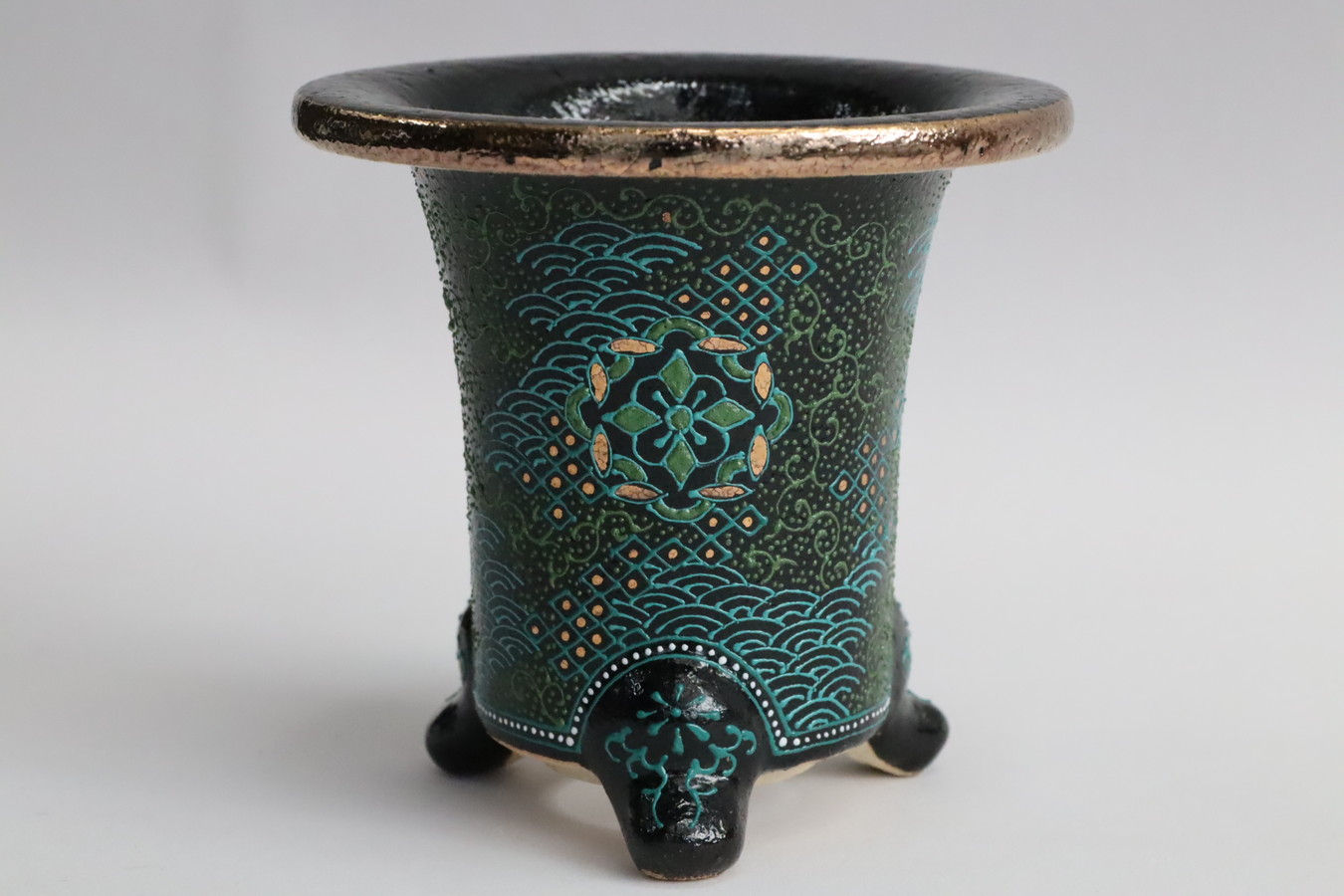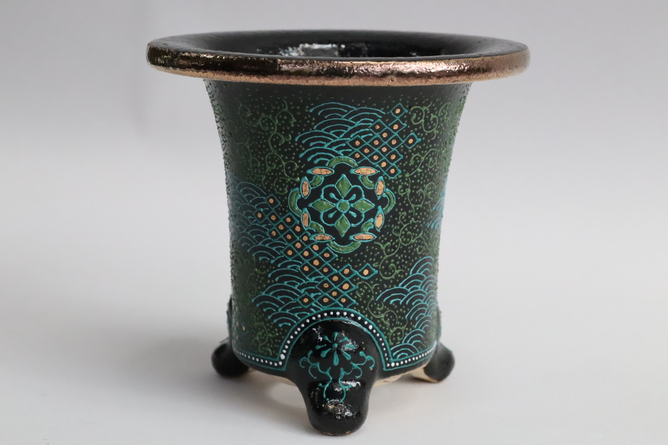 おもと鉢 利山・手島 現代鉢作家 利山工房のイッチン