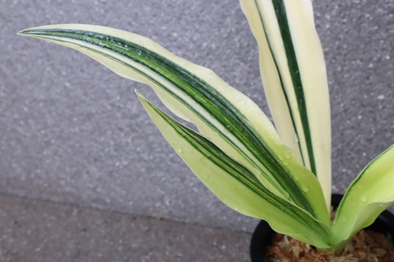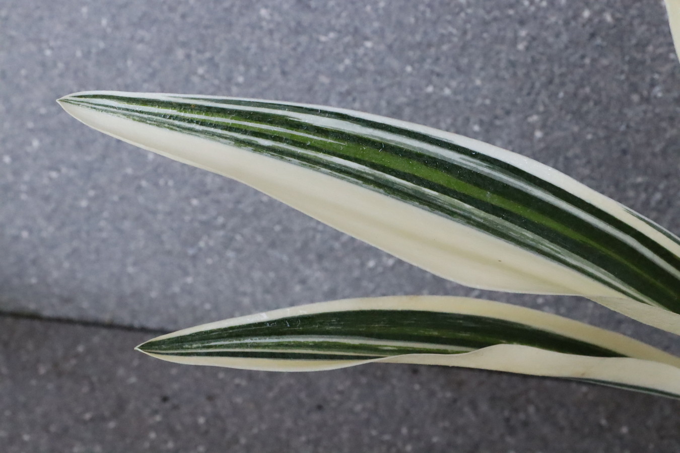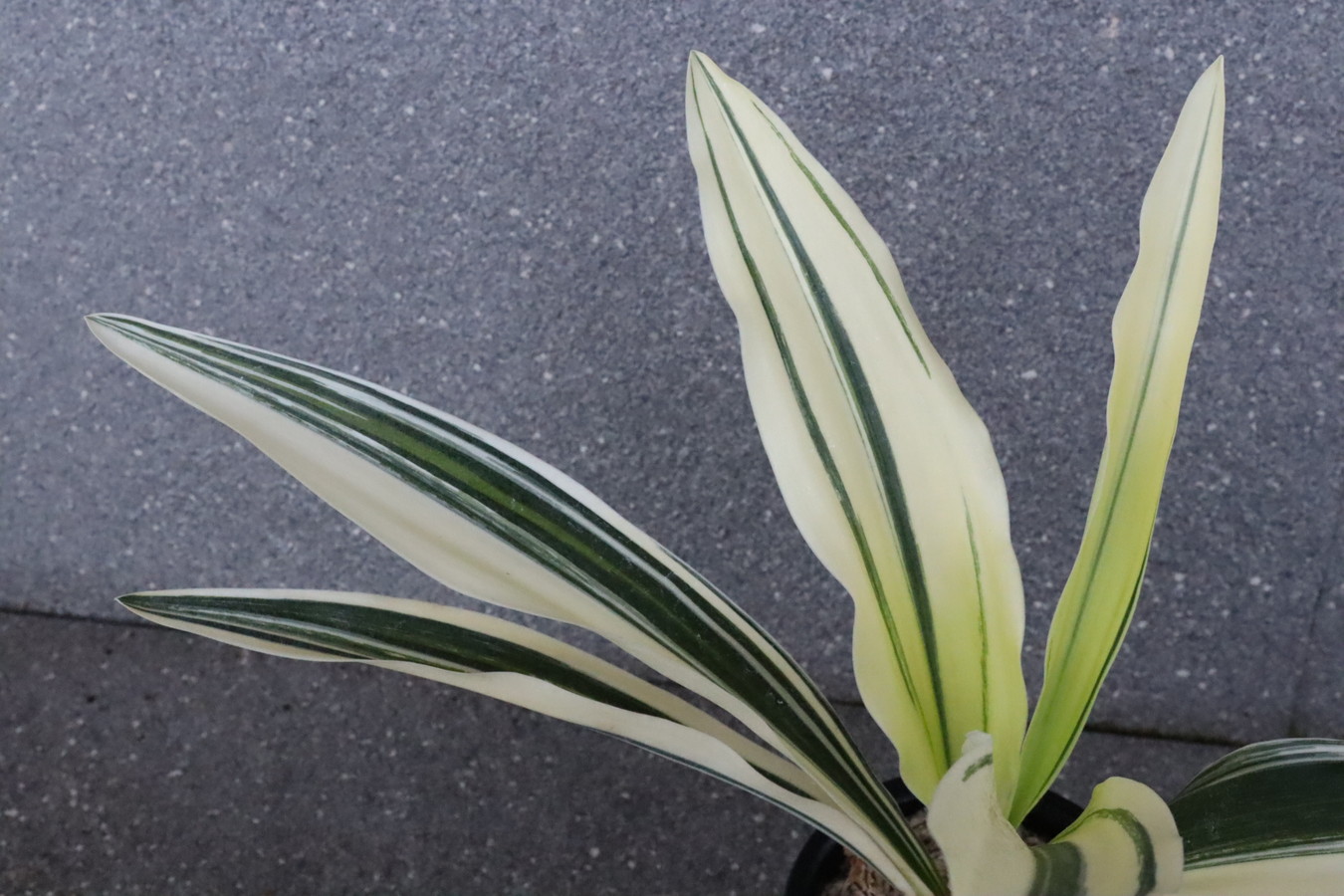 美しい縞柄と、幅広の葉、立ち姿に特徴がある