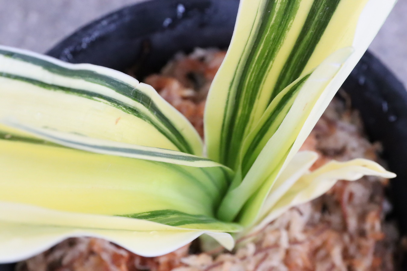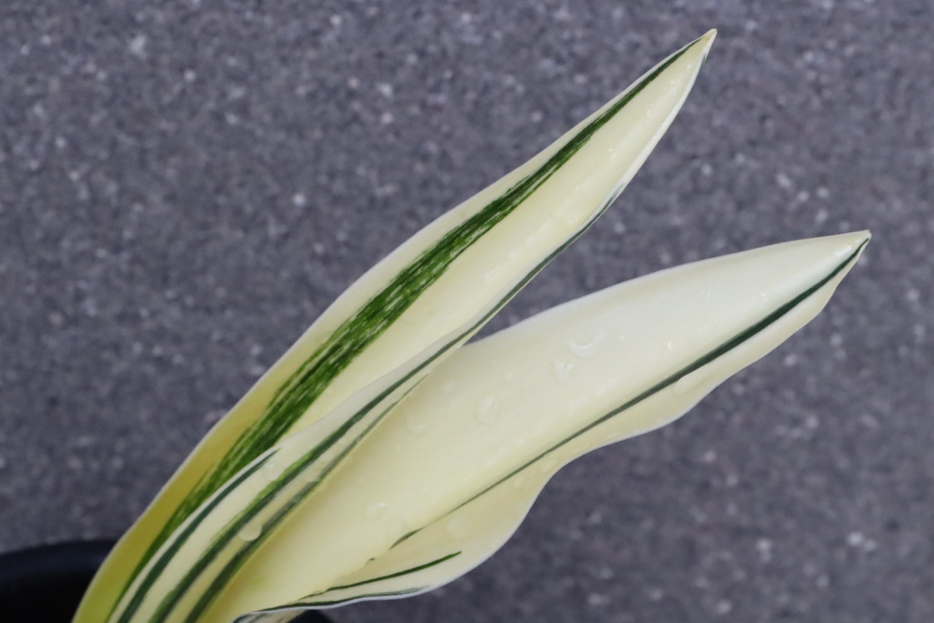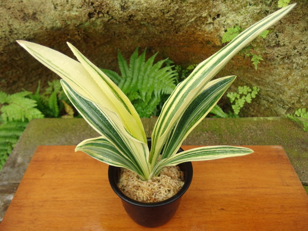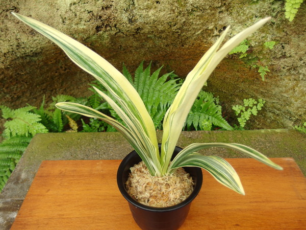 美しい縞柄と、幅広の葉、立ち姿に特徴がある