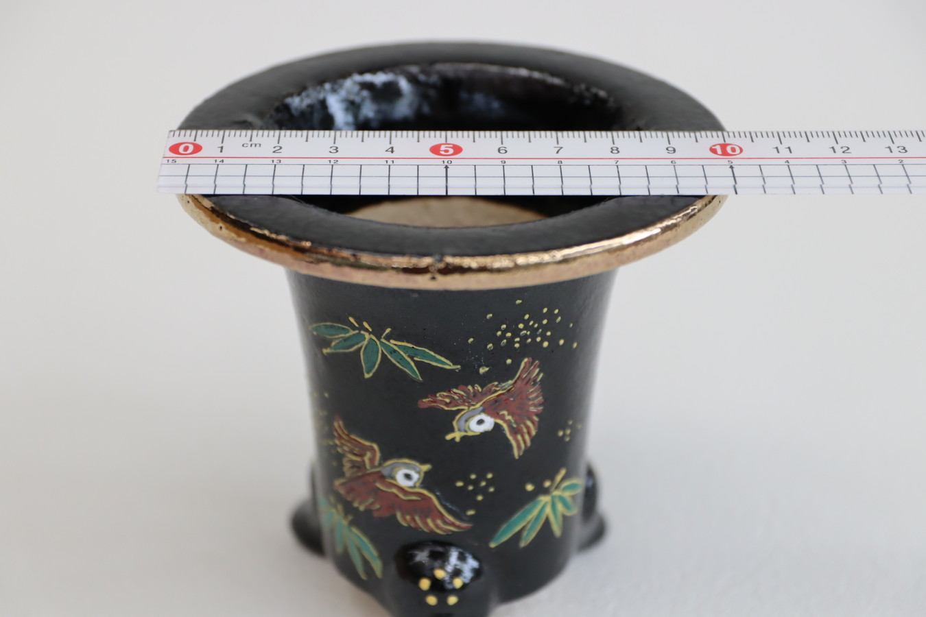 2504,雀 萬年青楽鉢 外径約10.3cm 縁起の良い図案