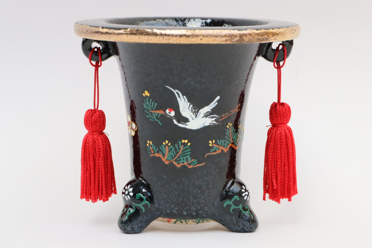 2318,耳飾り 吉祥鶴 外径約10.4cm 梅花サイン【新鉢大特価】新鉢