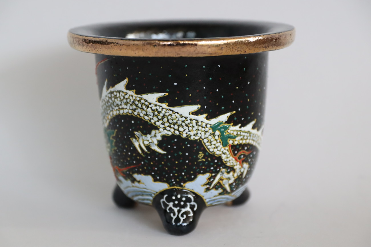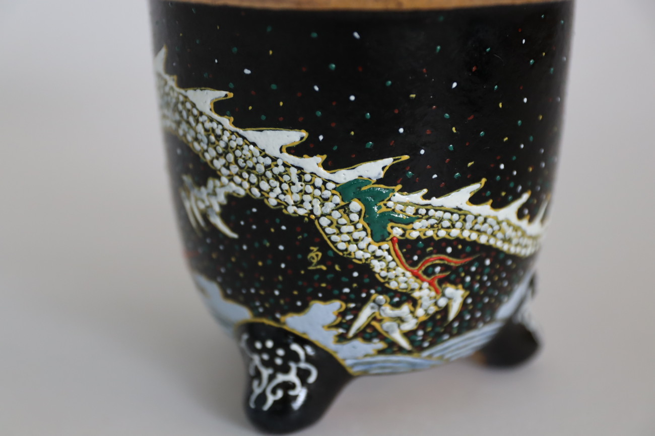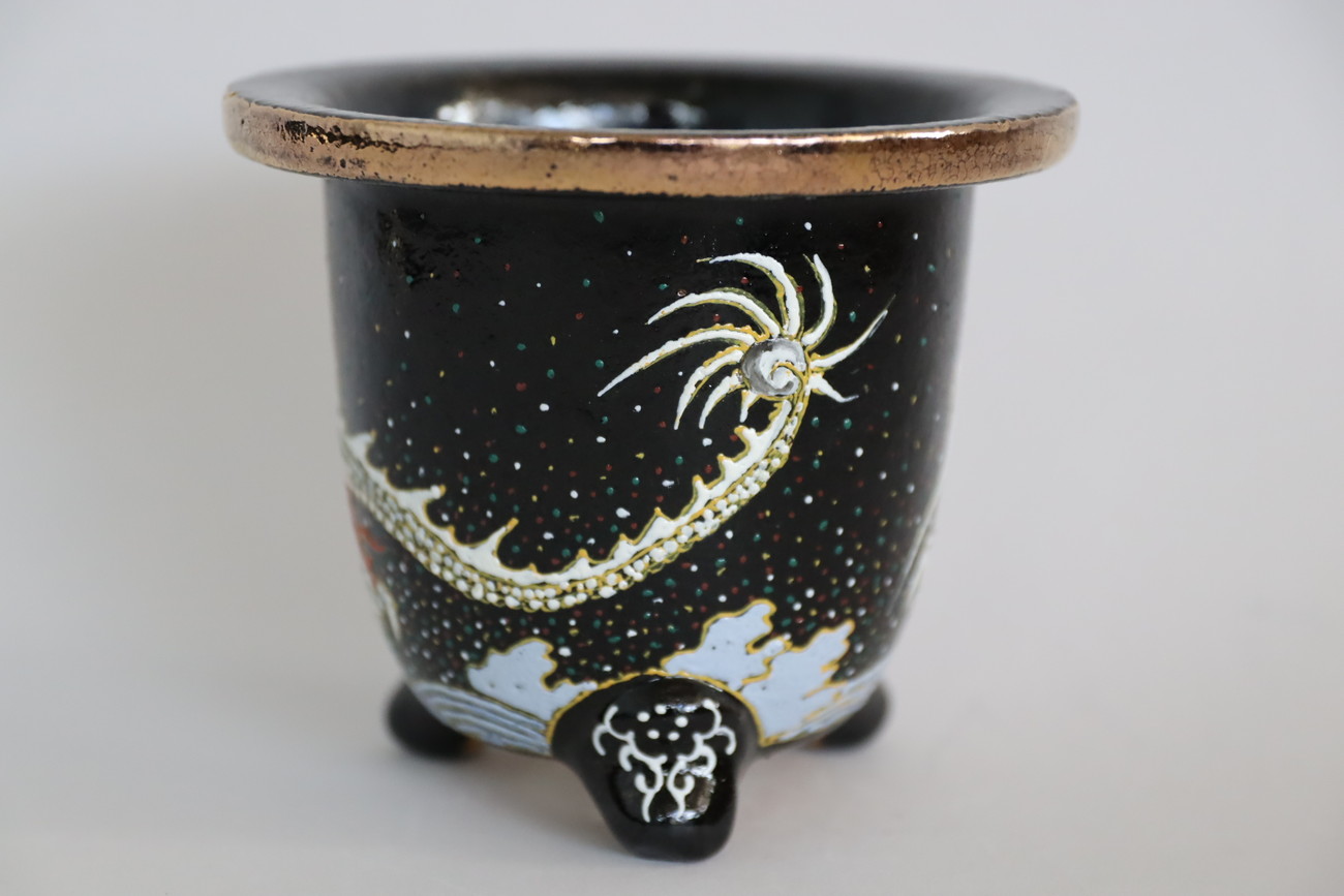 2094,龍 外径約10.8cm 高さ約9.1cm カバー鉢 亘サイン
