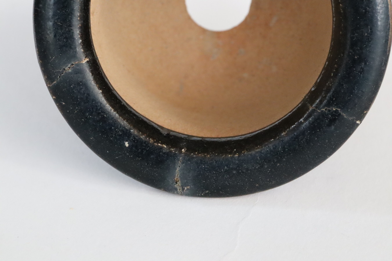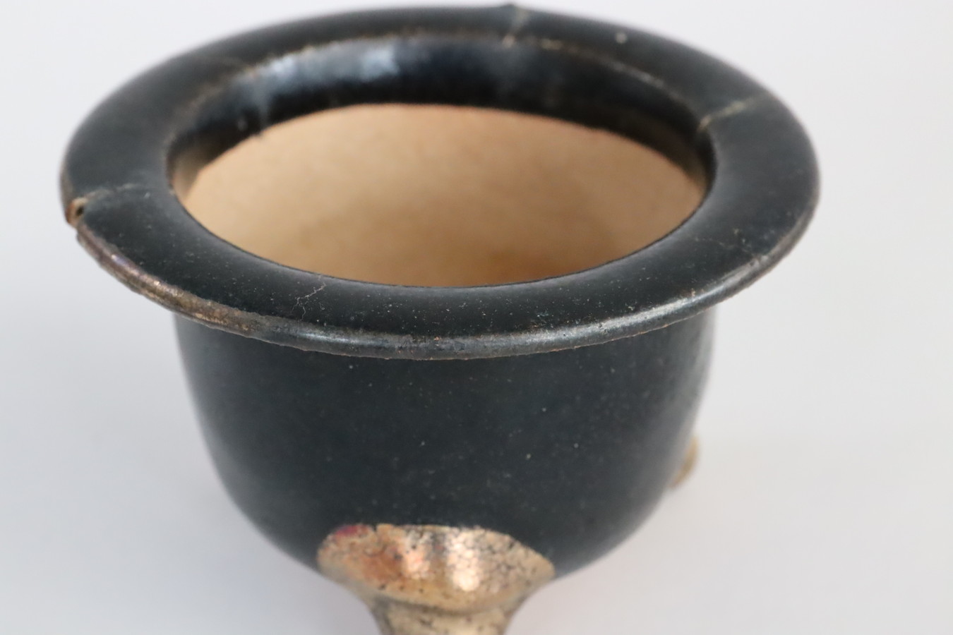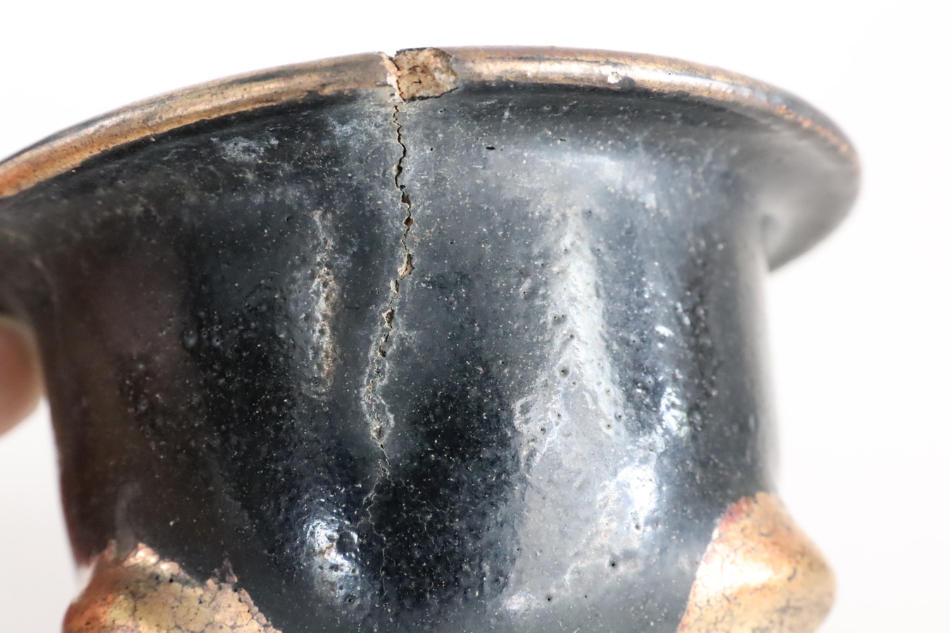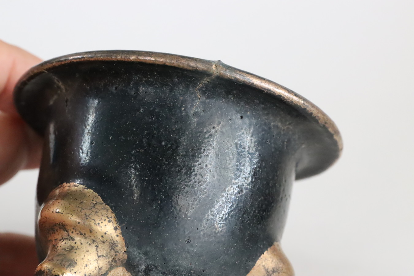 2061,古鉢 楽鉢 外径約8cm 高さ約5.3cm 加茂黒はさみあと 中古 ワレ 古く素晴らしい ※金継の練習台??