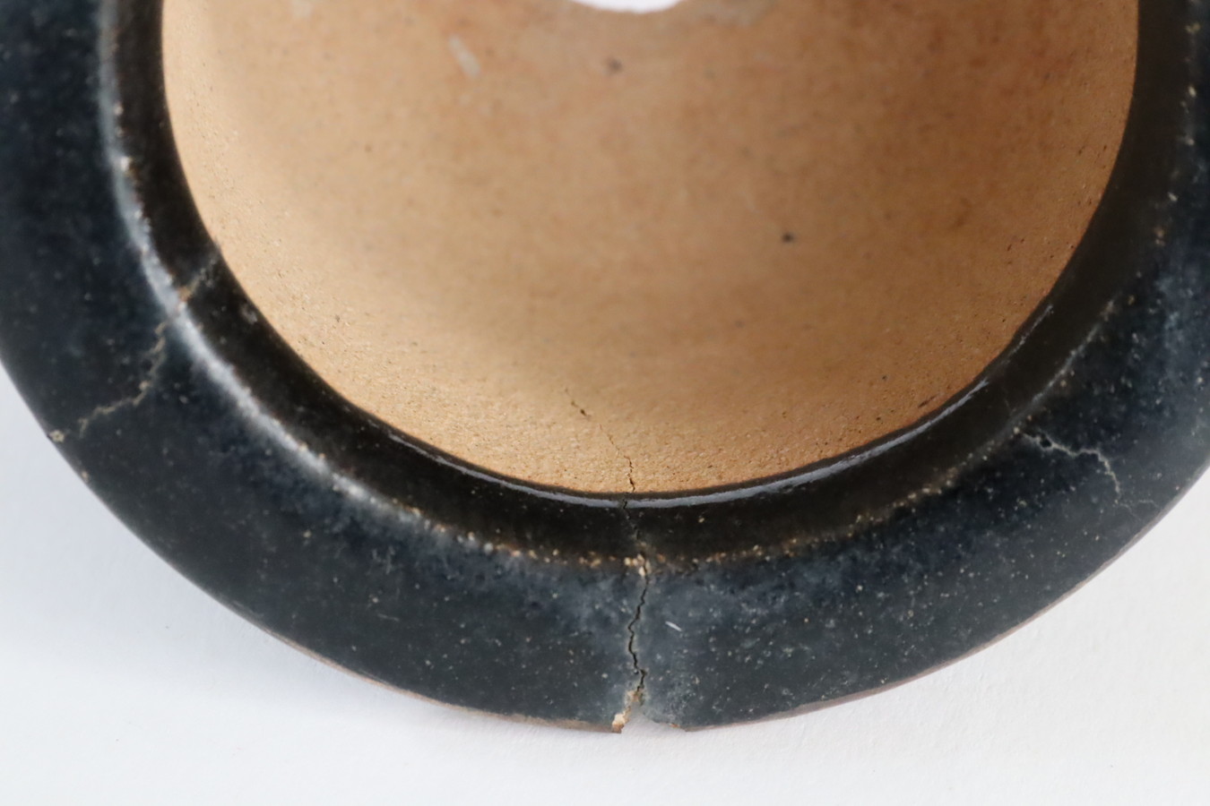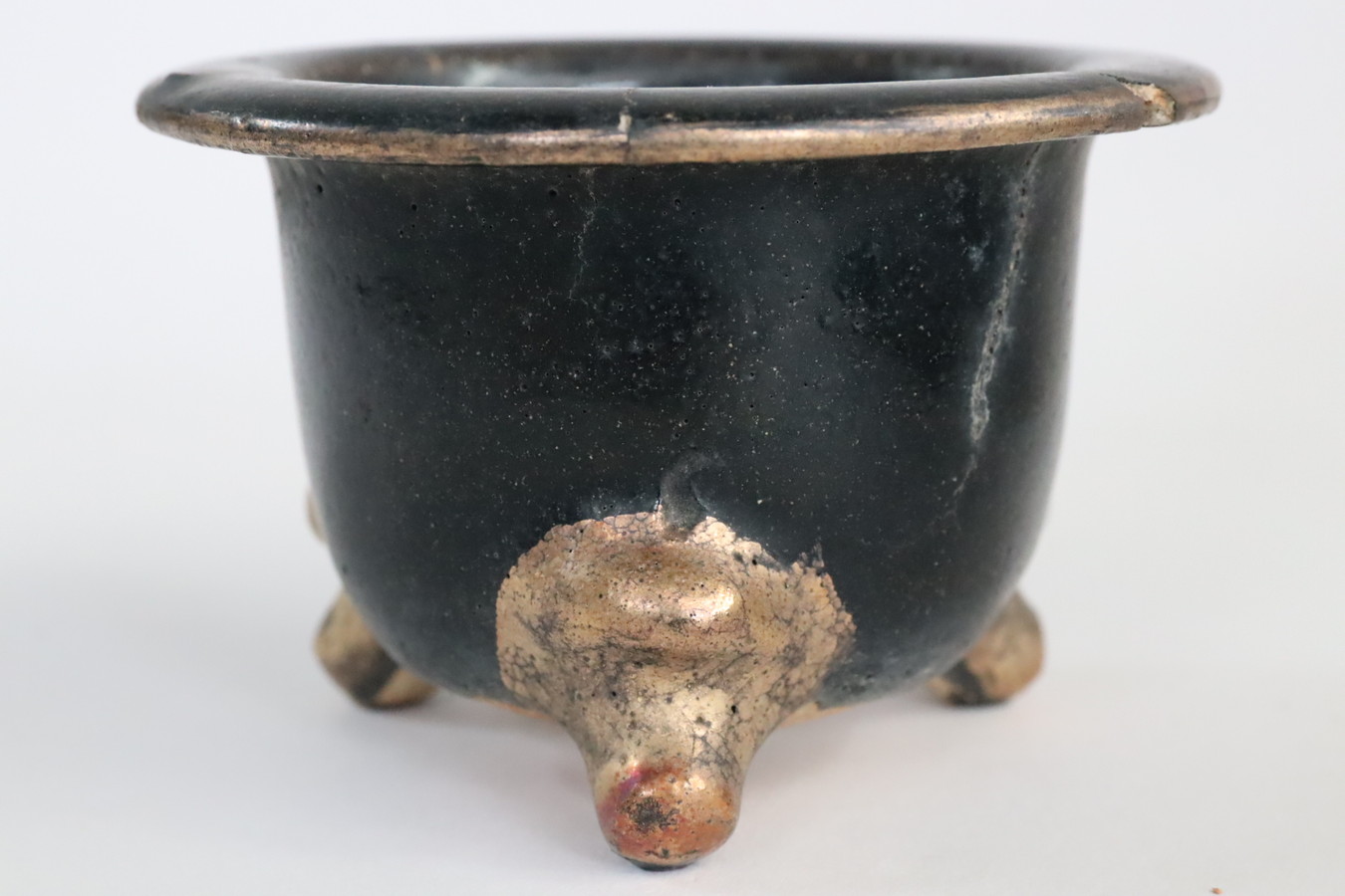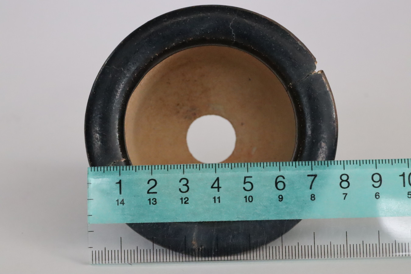 2061,古鉢 楽鉢 外径約8cm 高さ約5.3cm 加茂黒はさみあと 中古 ワレ 古く素晴らしい ※金継の練習台??
