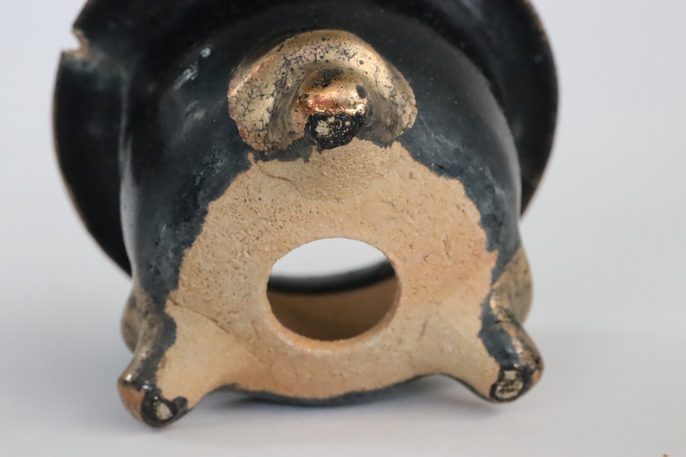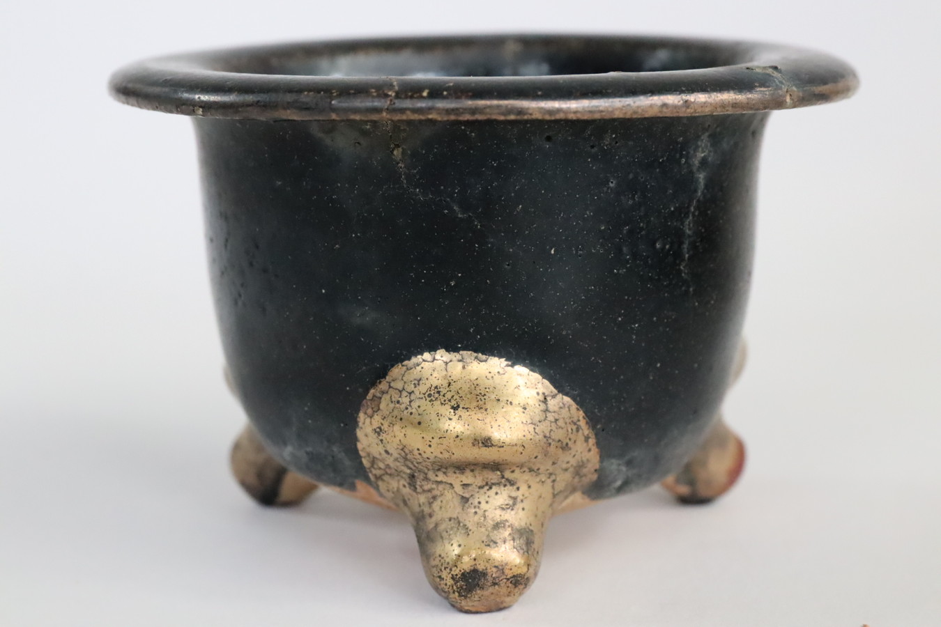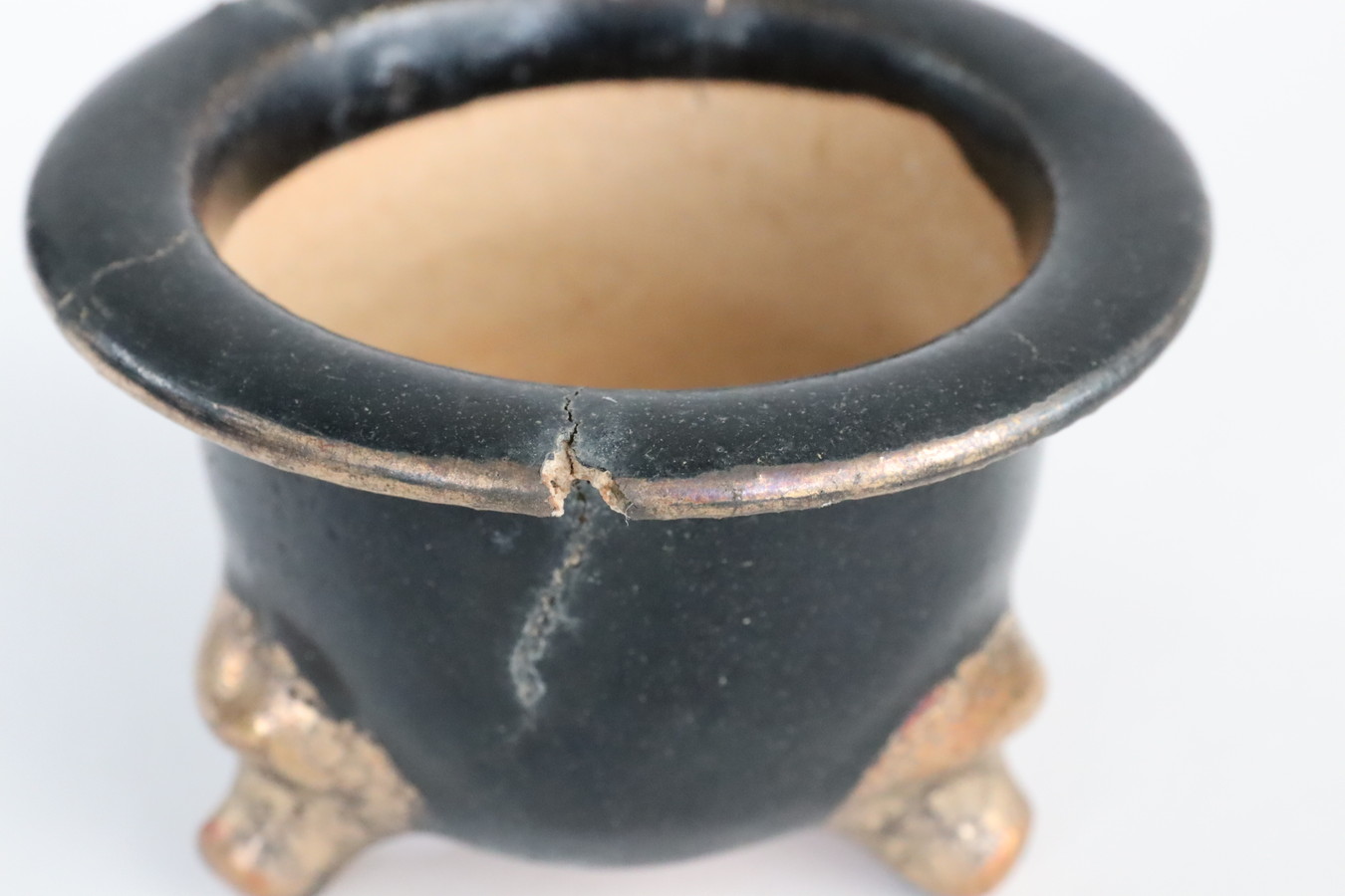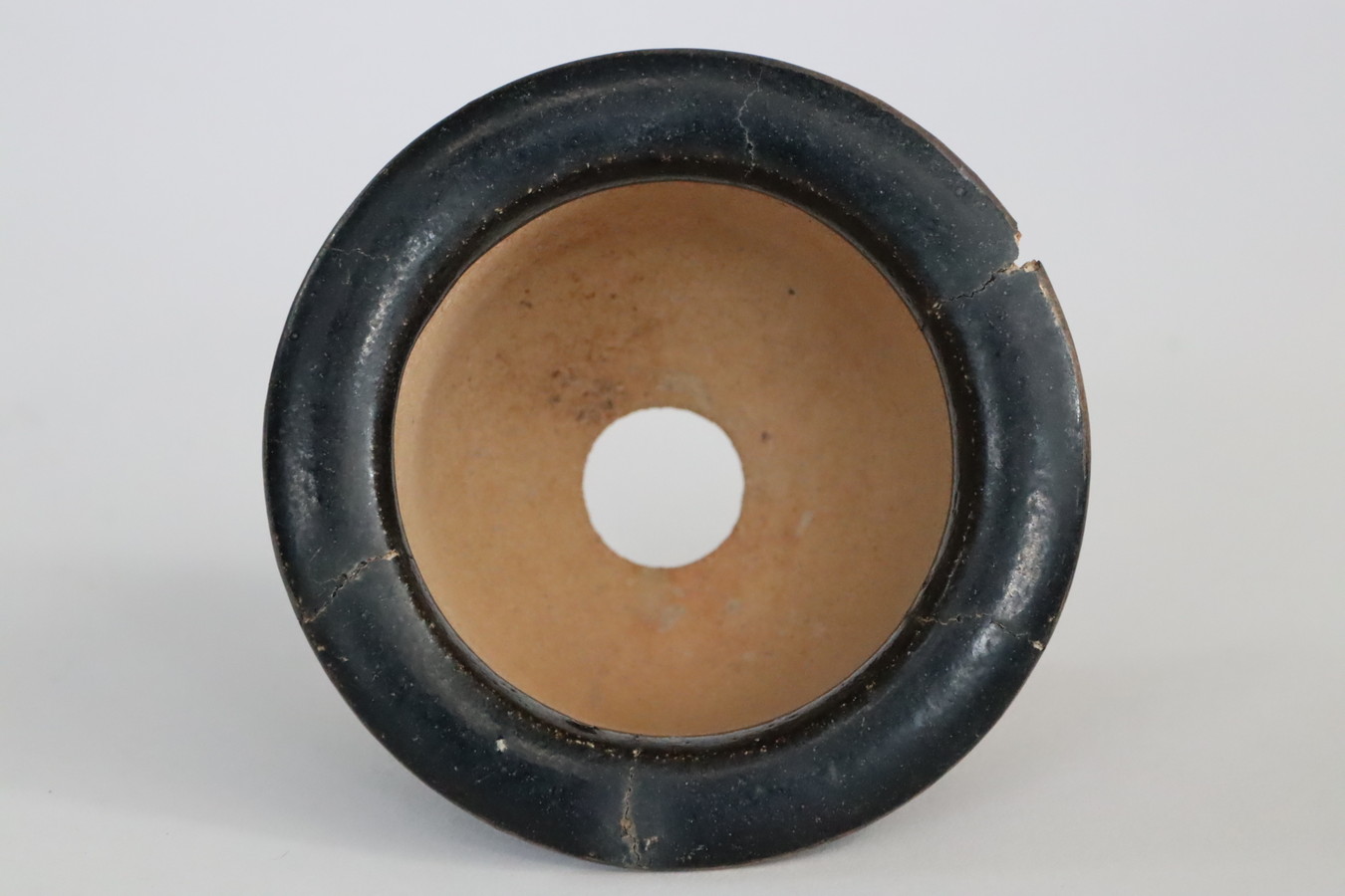 2061,古鉢 楽鉢 外径約8cm 高さ約5.3cm 加茂黒はさみあと 中古 ワレ 古く素晴らしい ※金継の練習台??