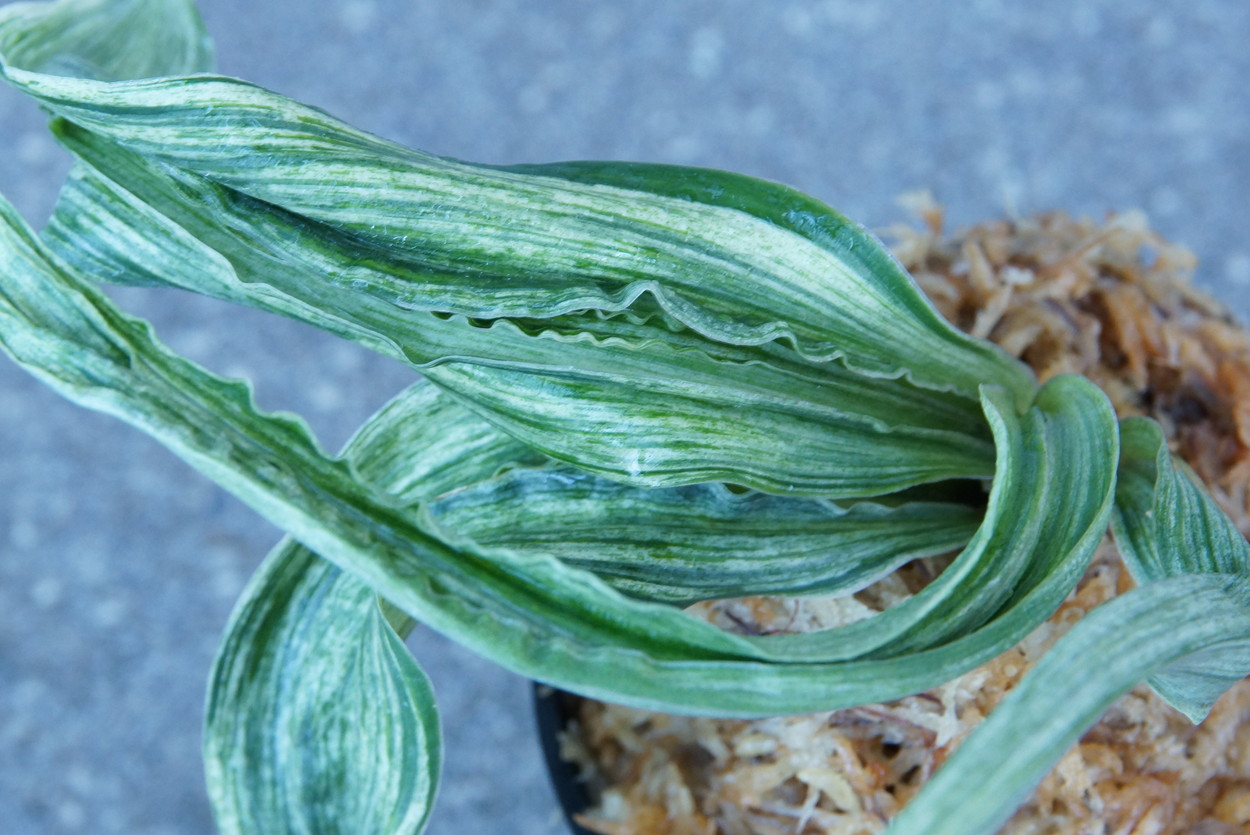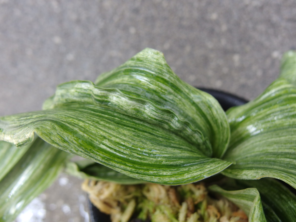 濃緑色の葉に美しい斑をみせる珍しい獅子