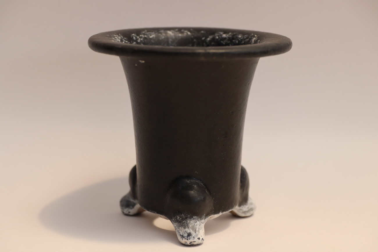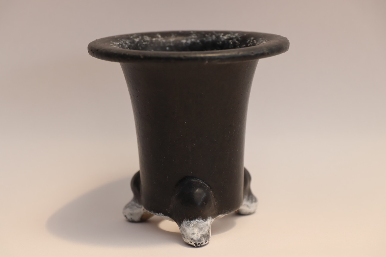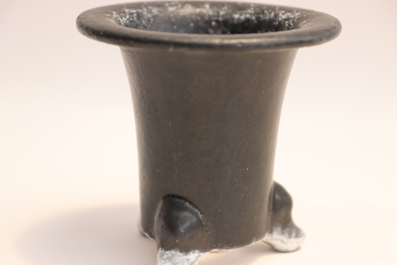 2141,古い黒鉢 万年青楽鉢 外径約10.8cm 中古