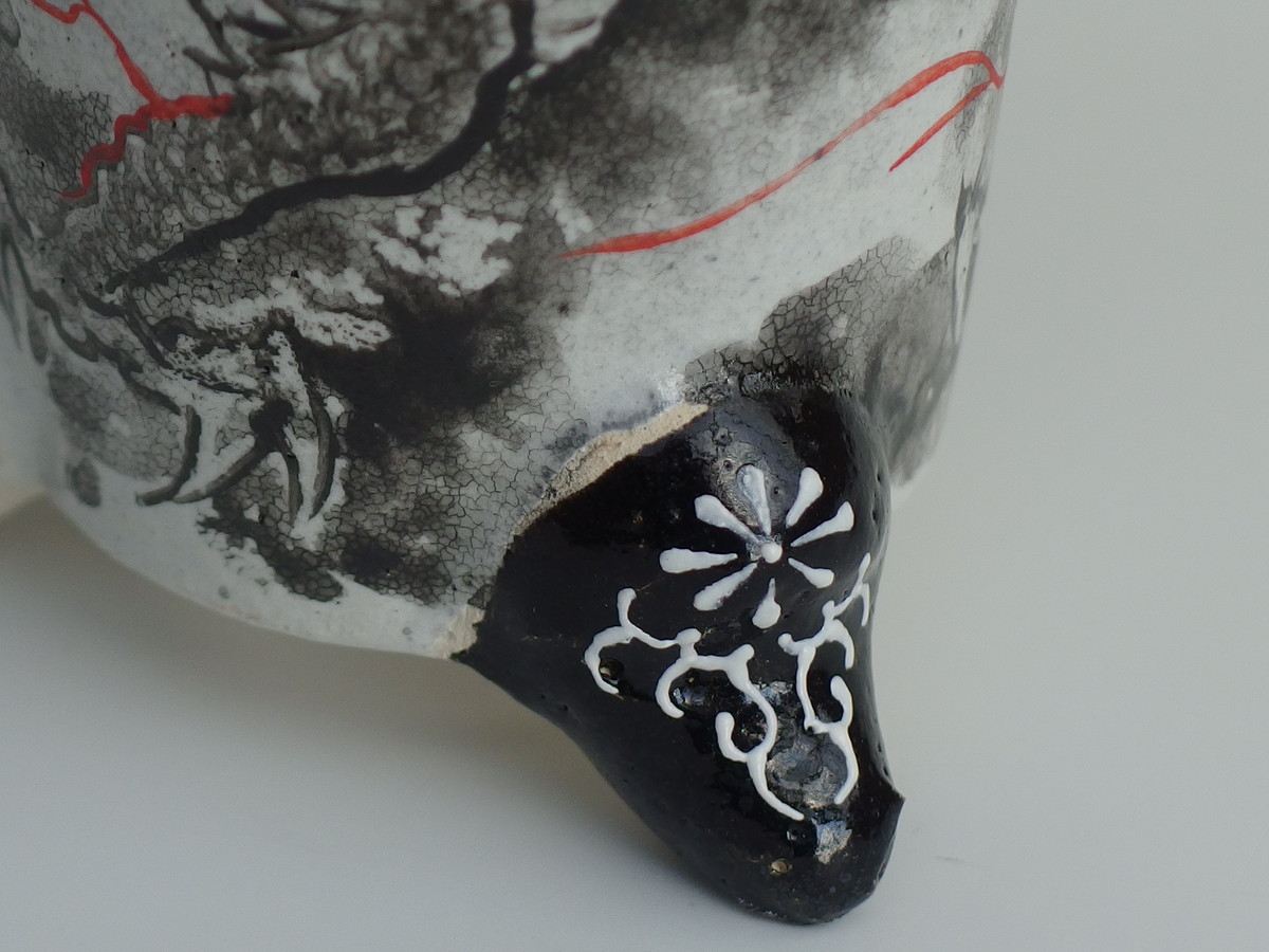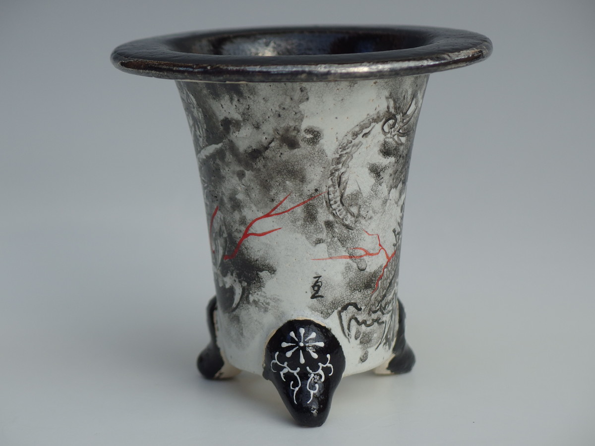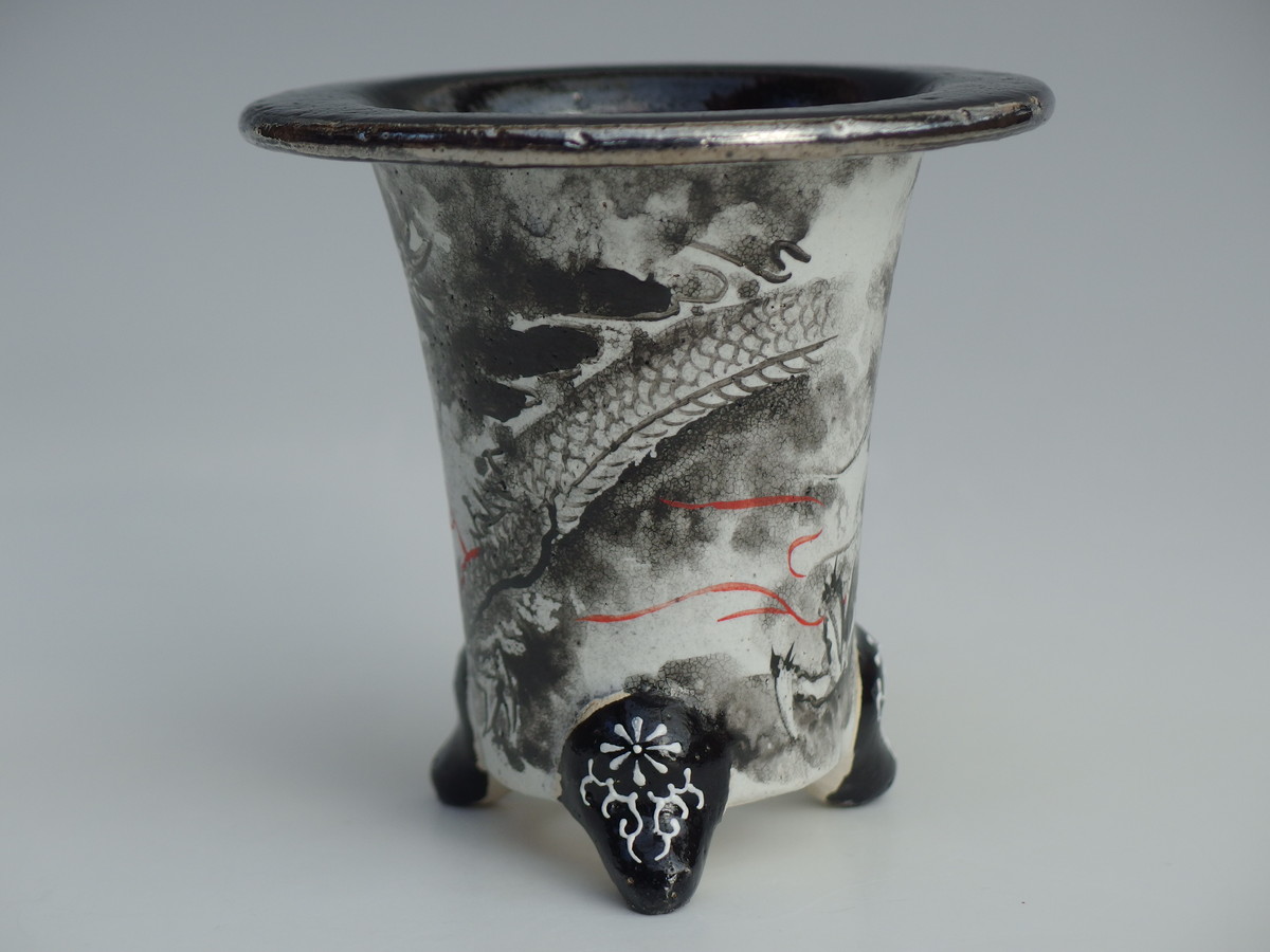 1点限り おもと鉢 万年青鉢 オモト鉢楽焼は天正年間(約400年前)に始まる日本独特の焼き物です。楽焼は《急熱急冷》という特殊な焼成方法をとります。急熱急冷だから、鉢に細かな 微細な穴ができ、通気を良くしています。おもと鉢 作り方 楽焼黒鉢の製造工程