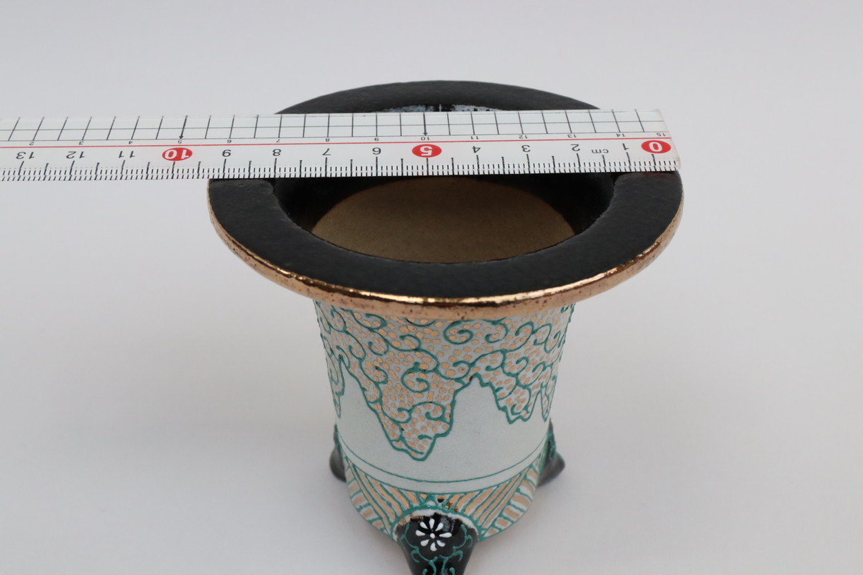 2036, 唐草七々子かけ流し文様 萬年青楽鉢 外径約10.5cm 新鉢