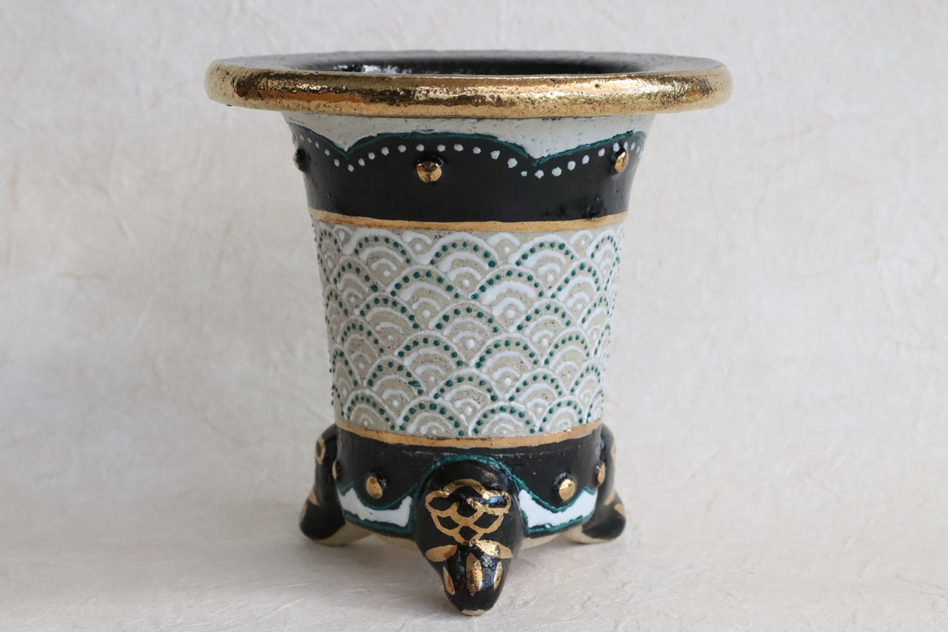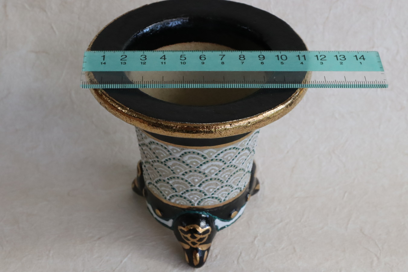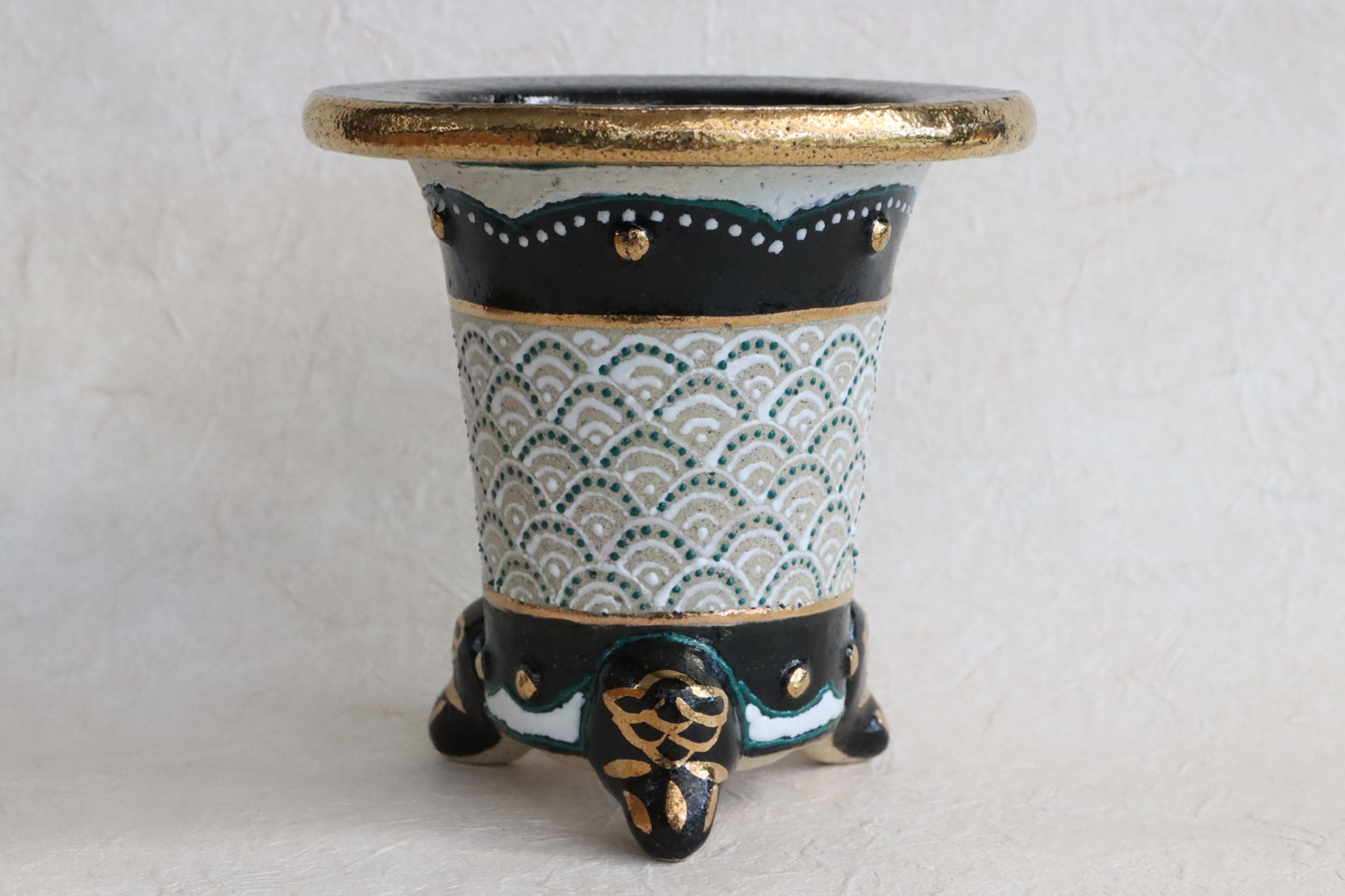 ●鉢は八の末広がりに通じ、鉢の底には水抜きの穴のあるのも、不浄を通し無病息災、見通し良く家運隆盛で、吉兆の縁起ものとして大切に扱われています。末広がり、無病息災、吉兆の錦鉢で飾る。