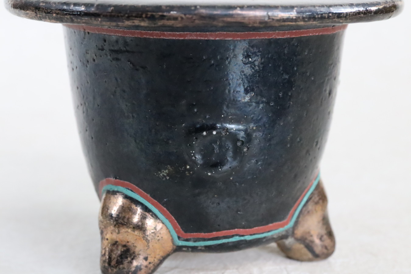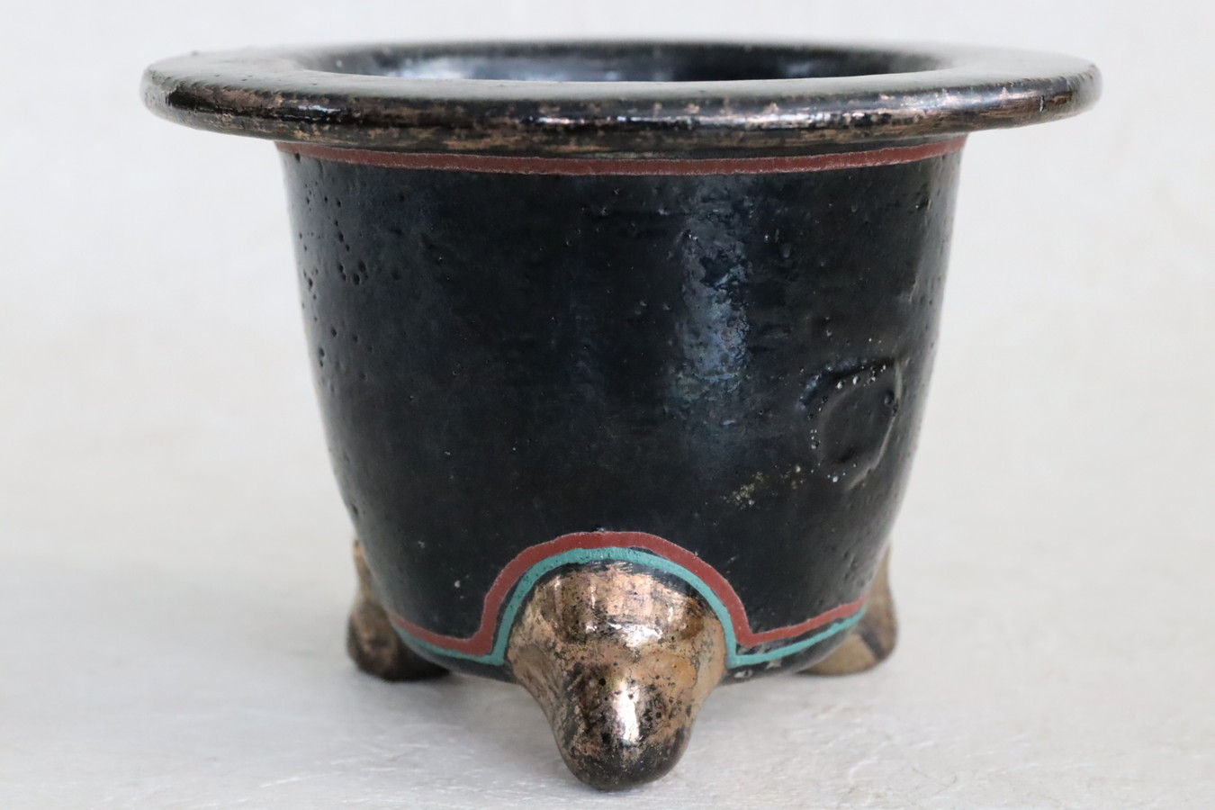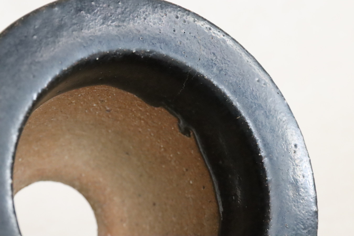 2483, 古鉢 外径約9.9cm 高さ約6.9cm 中古 ヒビ【加茂黒 はさみあと】著名な作家さんより コレクション nk