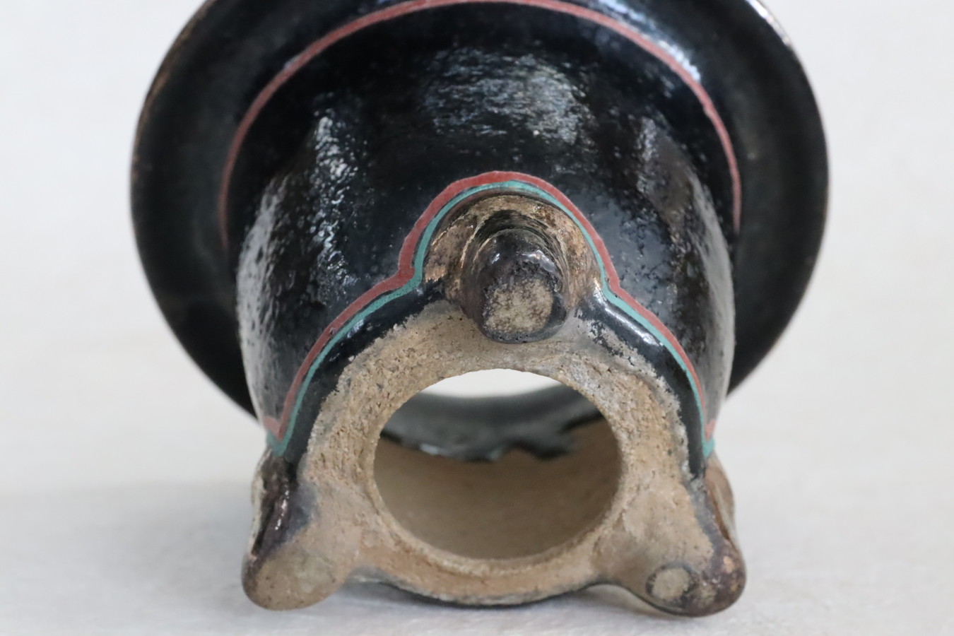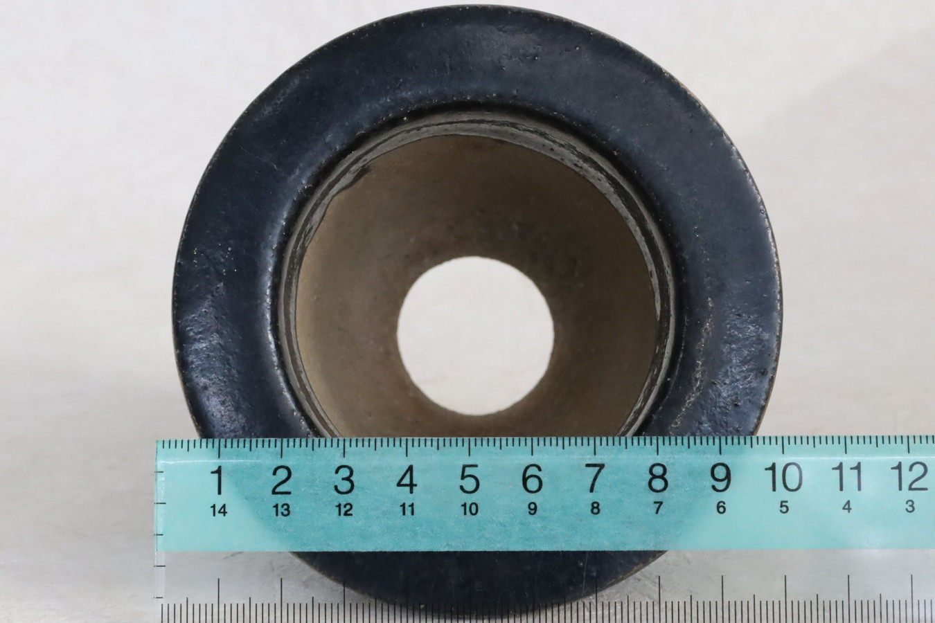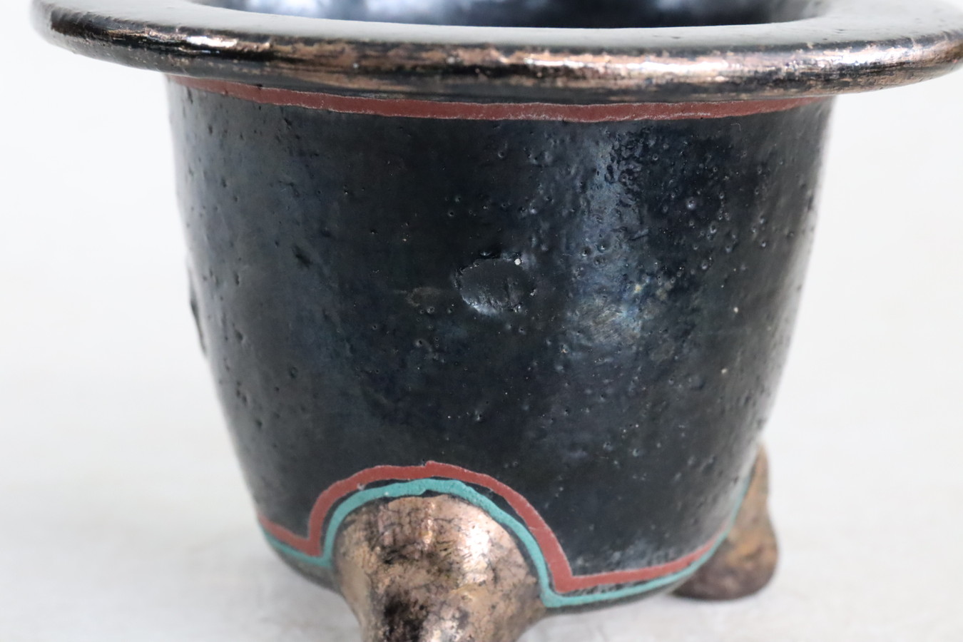 2483, 古鉢 外径約9.9cm 高さ約6.9cm 中古 ヒビ【加茂黒 はさみあと】著名な作家さんより コレクション nk
