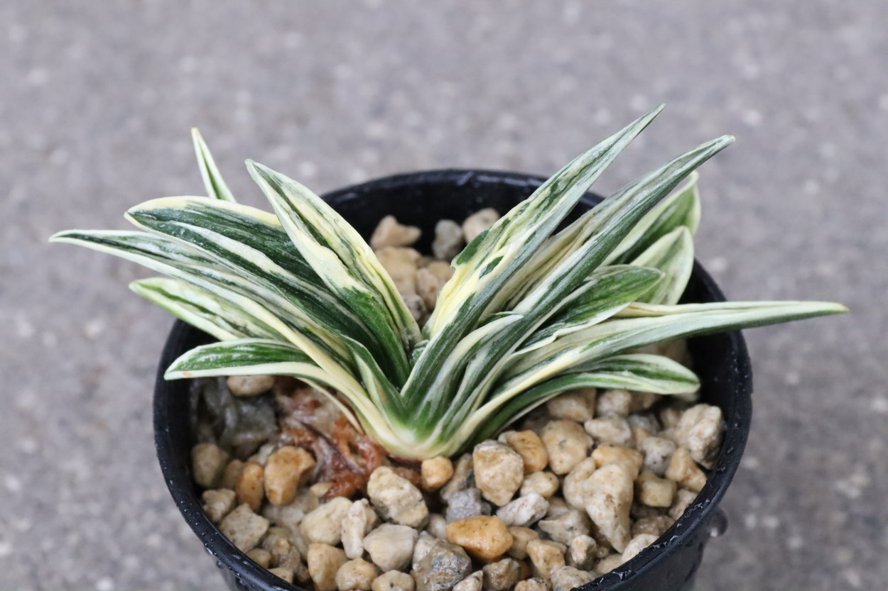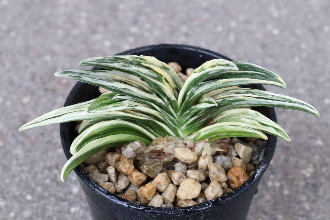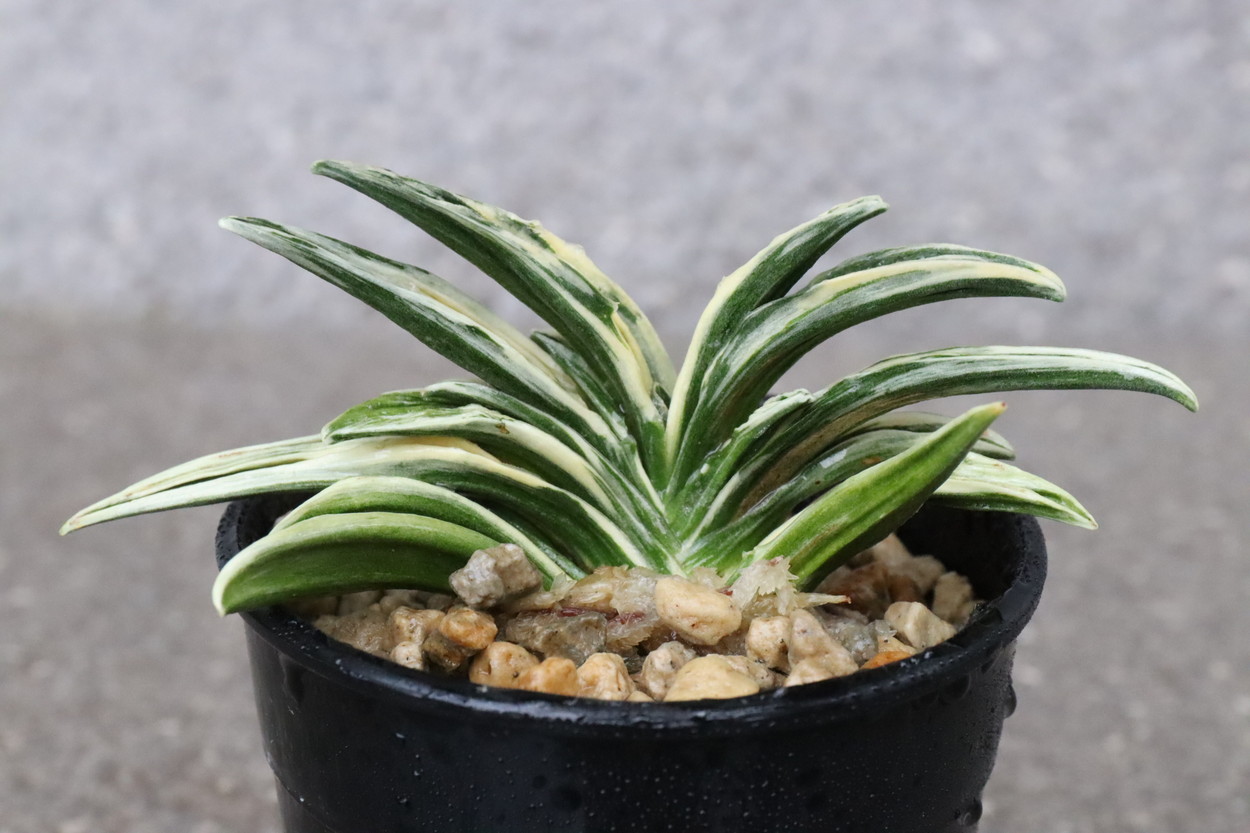 小型種で葉先鋭く、肉厚で緻密な地合いに