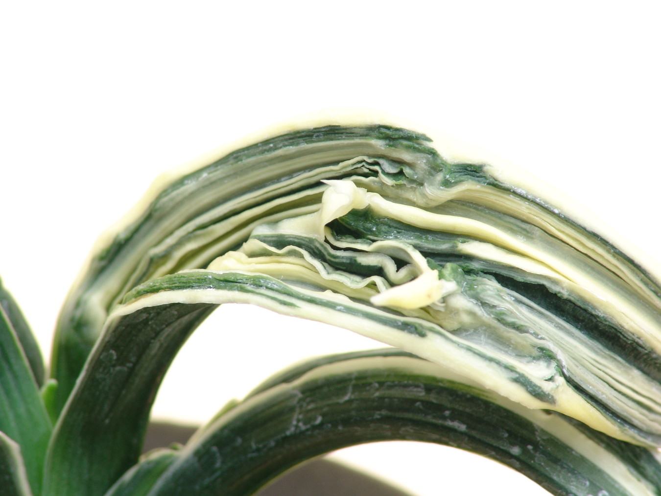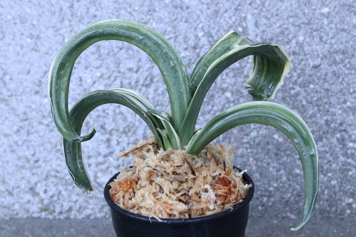 おもとの中でもこれほど激しい玉雅糸竜・跳竜を見せる品種は少ない。獅子系統の中では一度は作ってみたい品種。子上良く丈夫です。又実親として芸を移す雄木に使用しても面白い。