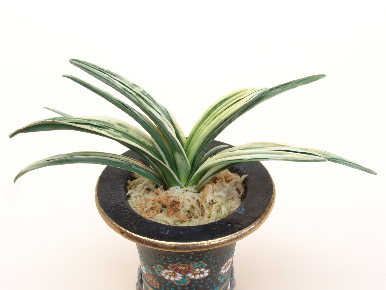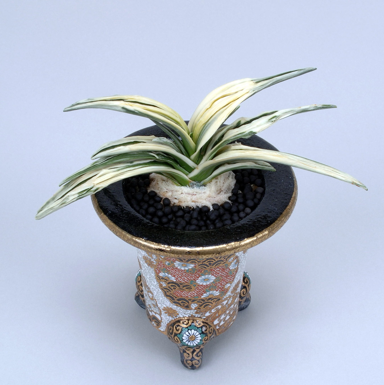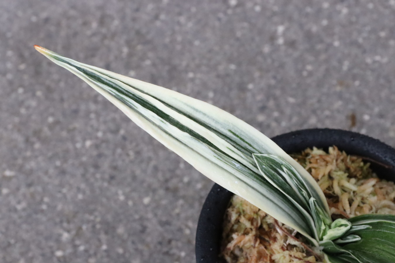 羅紗という系統の手のひらにのるサイズの万年青で、2~3年で芸を見せ始め、5年で親になる。見ごたえのある豊綬楽にしたかったら、7年ほどかかるかもしれない。それだけ時間がかかっても、育てる価値がある品種。非常に丈夫で、力がつくと子上げもする。芋吹きで増やすことが多いので、殖えるのに少しだけ時間がかかる。なので、どうしてもより殖え易いもの(割り子がよく上がる品種)よりは価格は少しだけ高い。
