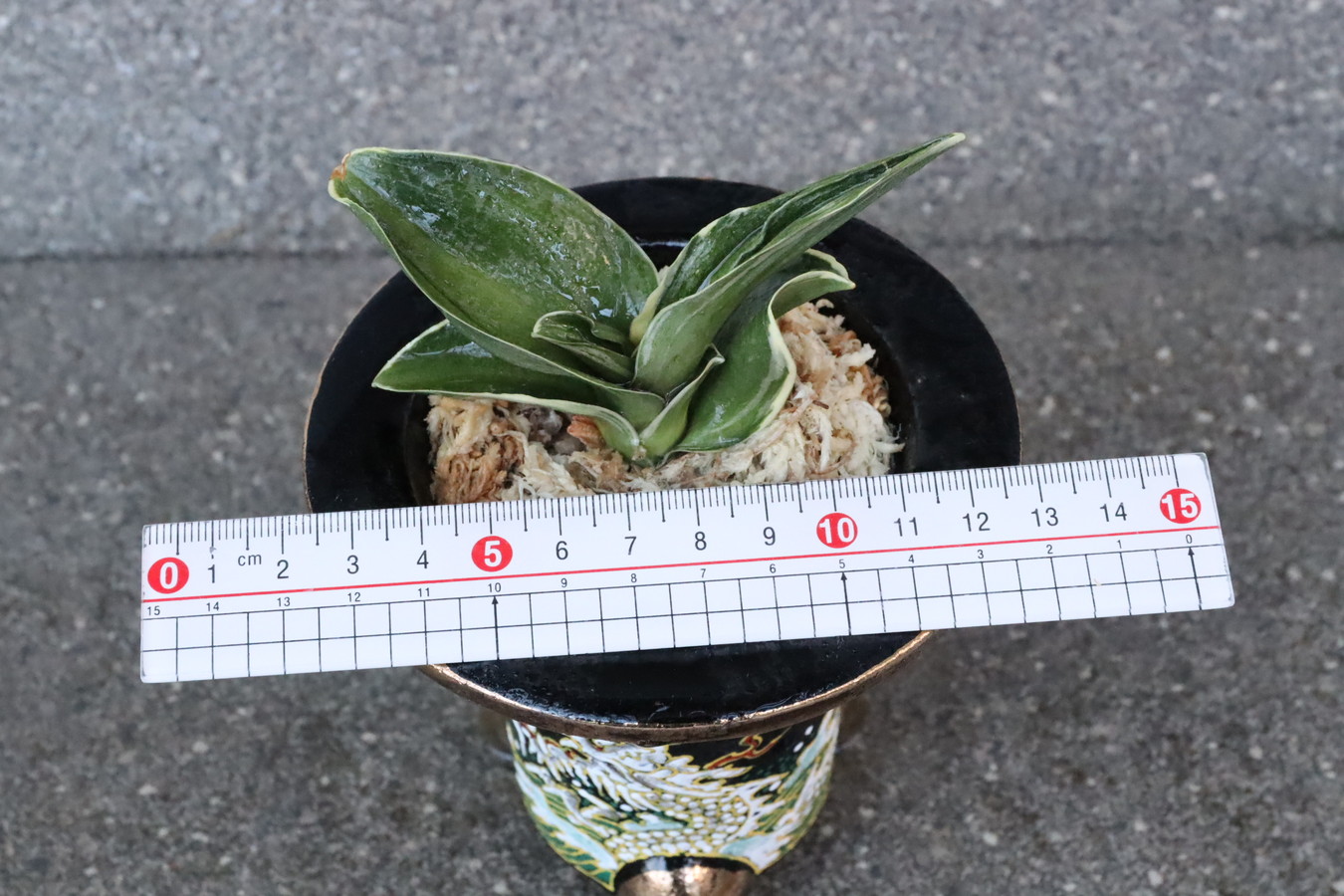 この品種の魅力は、「力和」でしか味わえない芸、丸葉の可愛らしい姿、その変化と、たくさんあります。杉山力蔵氏と岡田和吉氏が共有したため、『力和実生』と呼ばれ親しまれてました。昭和48年に待望の覆輪が完成。実生時代から常に人気で、三河地方では当時100万円、300万以上の値が付いて、喧嘩するほどの奪い合いだったそうです(豊明園2代目談)。