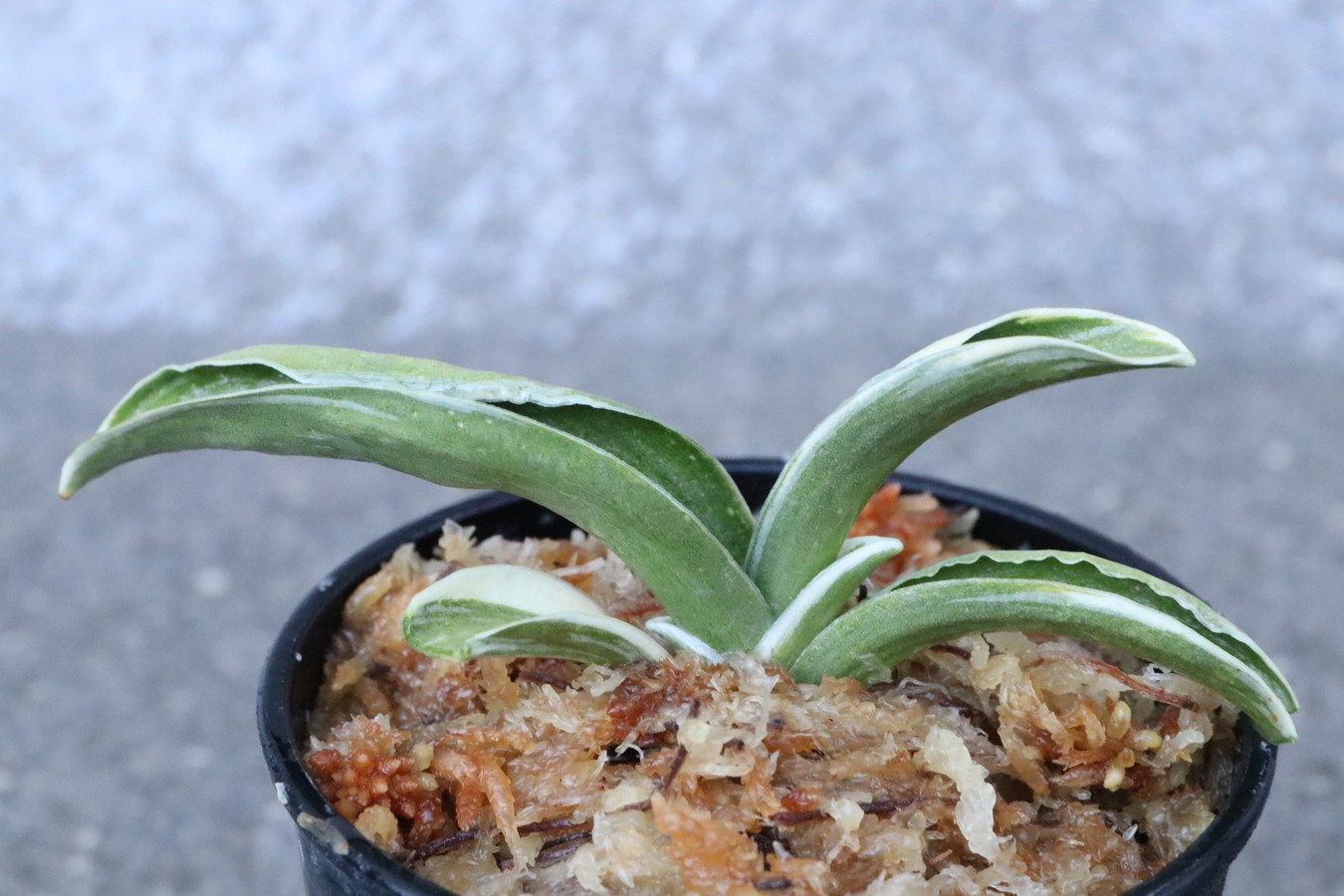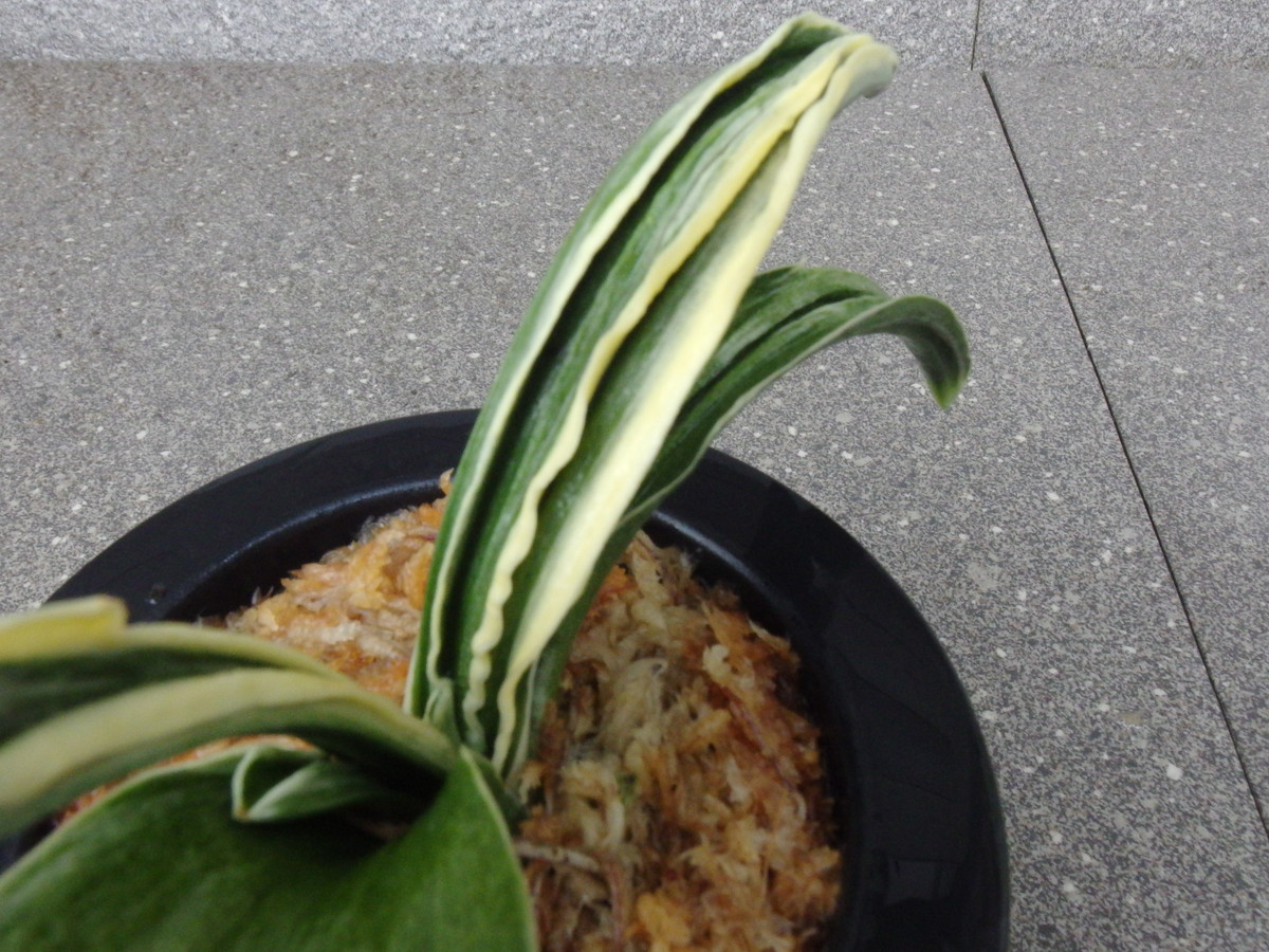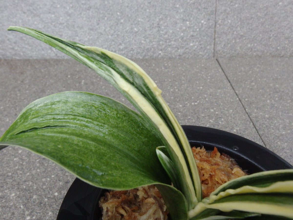 葉肉の厚い葉に折り熨斗葉と剣葉・跳ね竜を見せる。