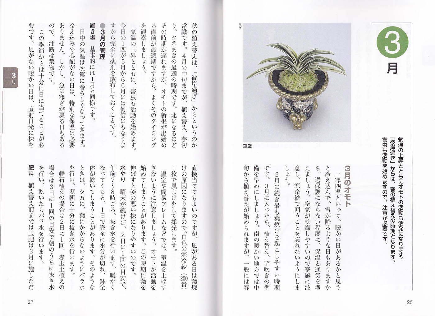 おもとの12ヶ月ごとの管理法を分りやすく解説。
