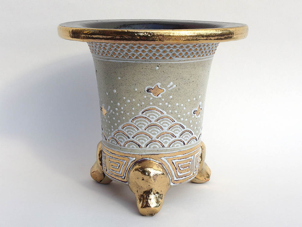 一点物 楽焼は天正年間(約400年前)に始まる日本独特の焼き物です。 楽焼は《急熱急冷》という特殊な焼成方法をとります。 急熱急冷だから、鉢に細かな 微細な穴ができ、通気を良くしています。 おもと鉢 作り方 楽焼黒鉢の製造工程
