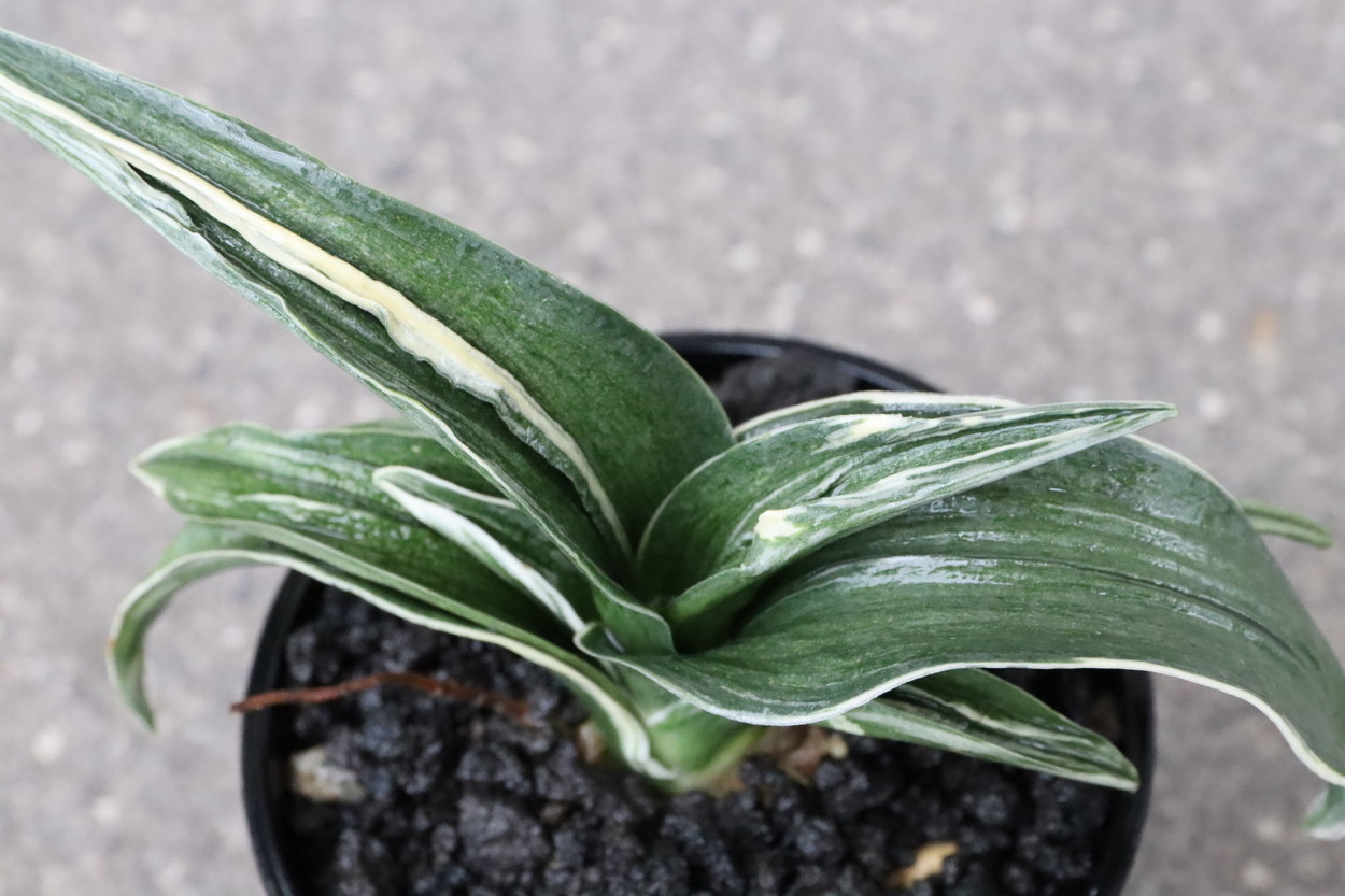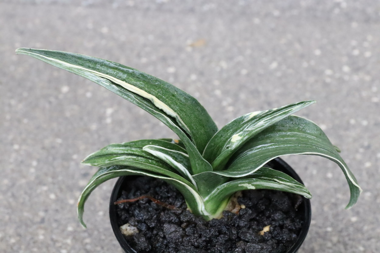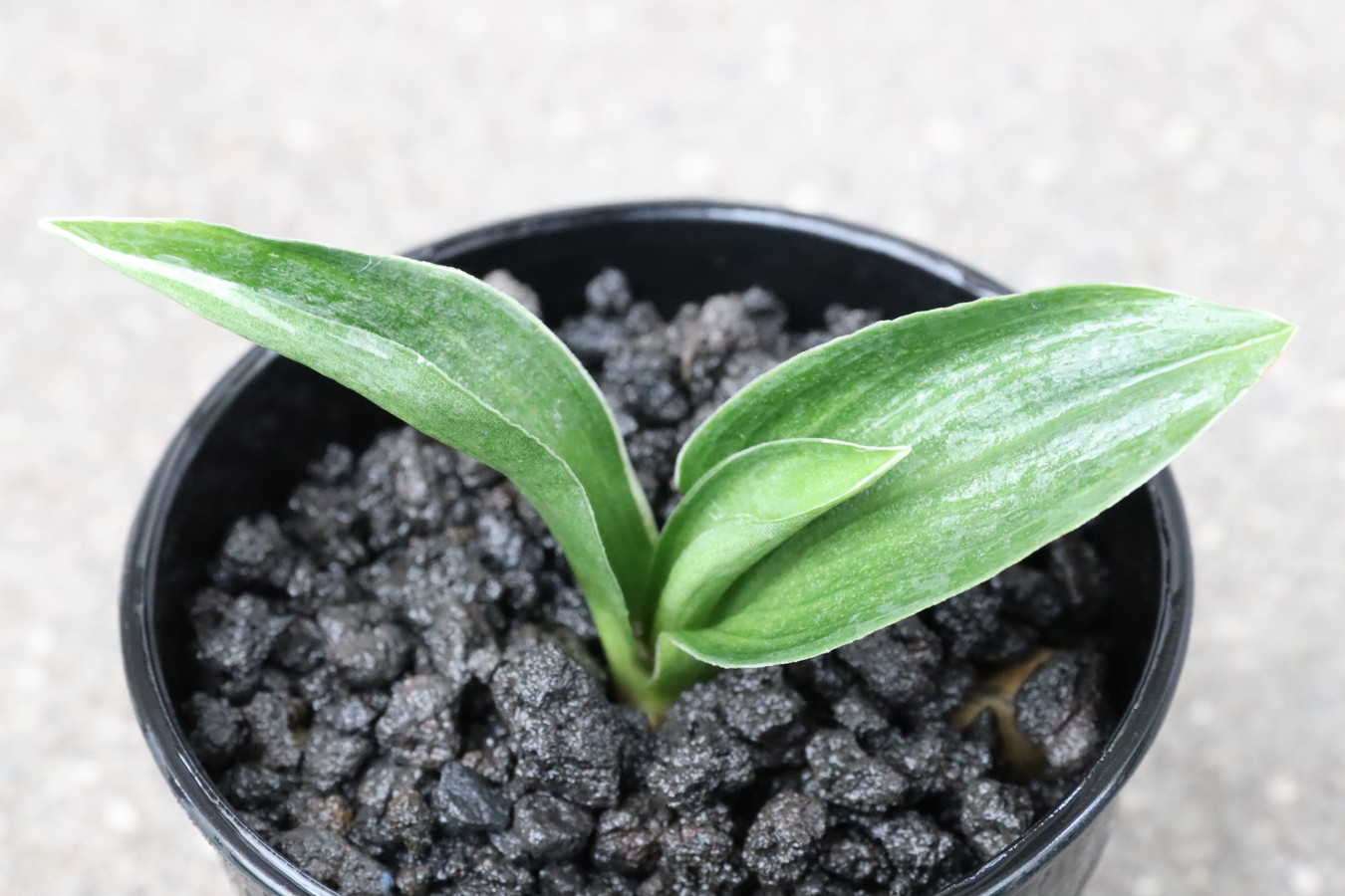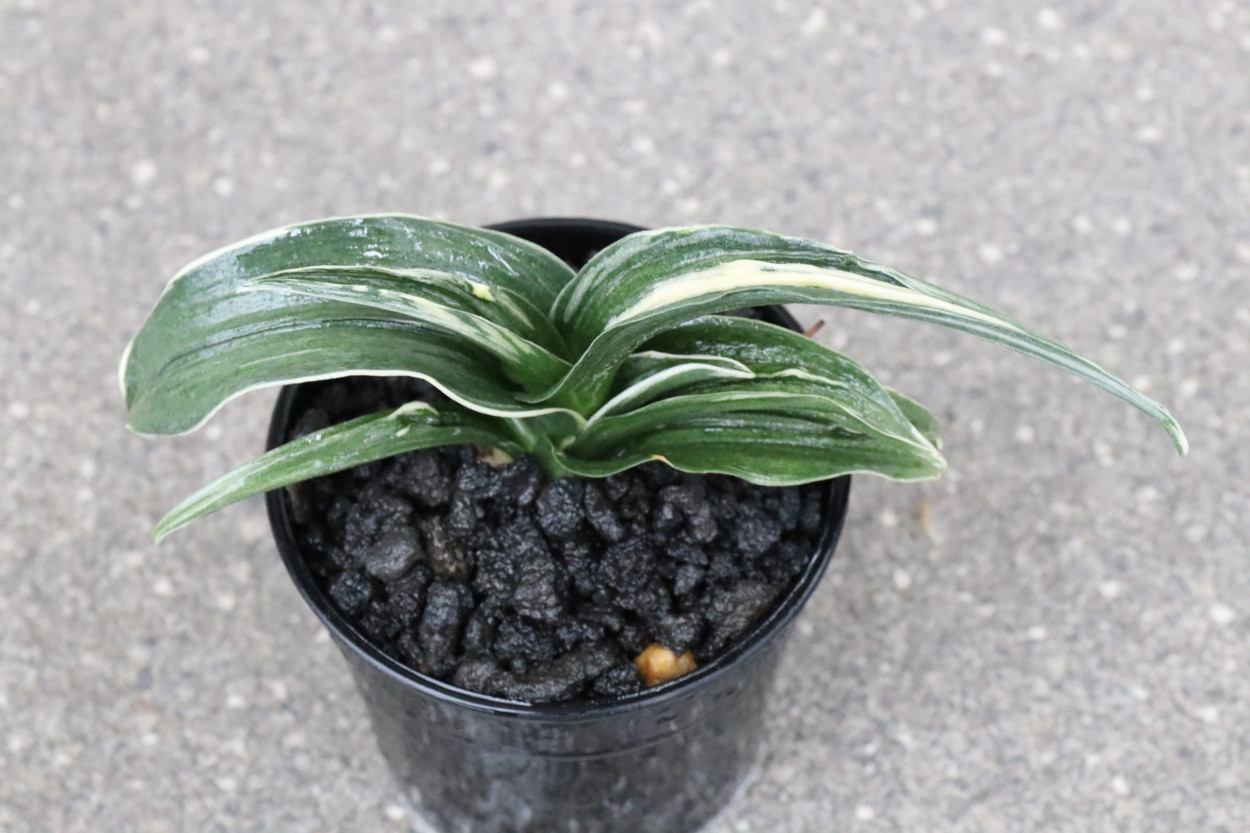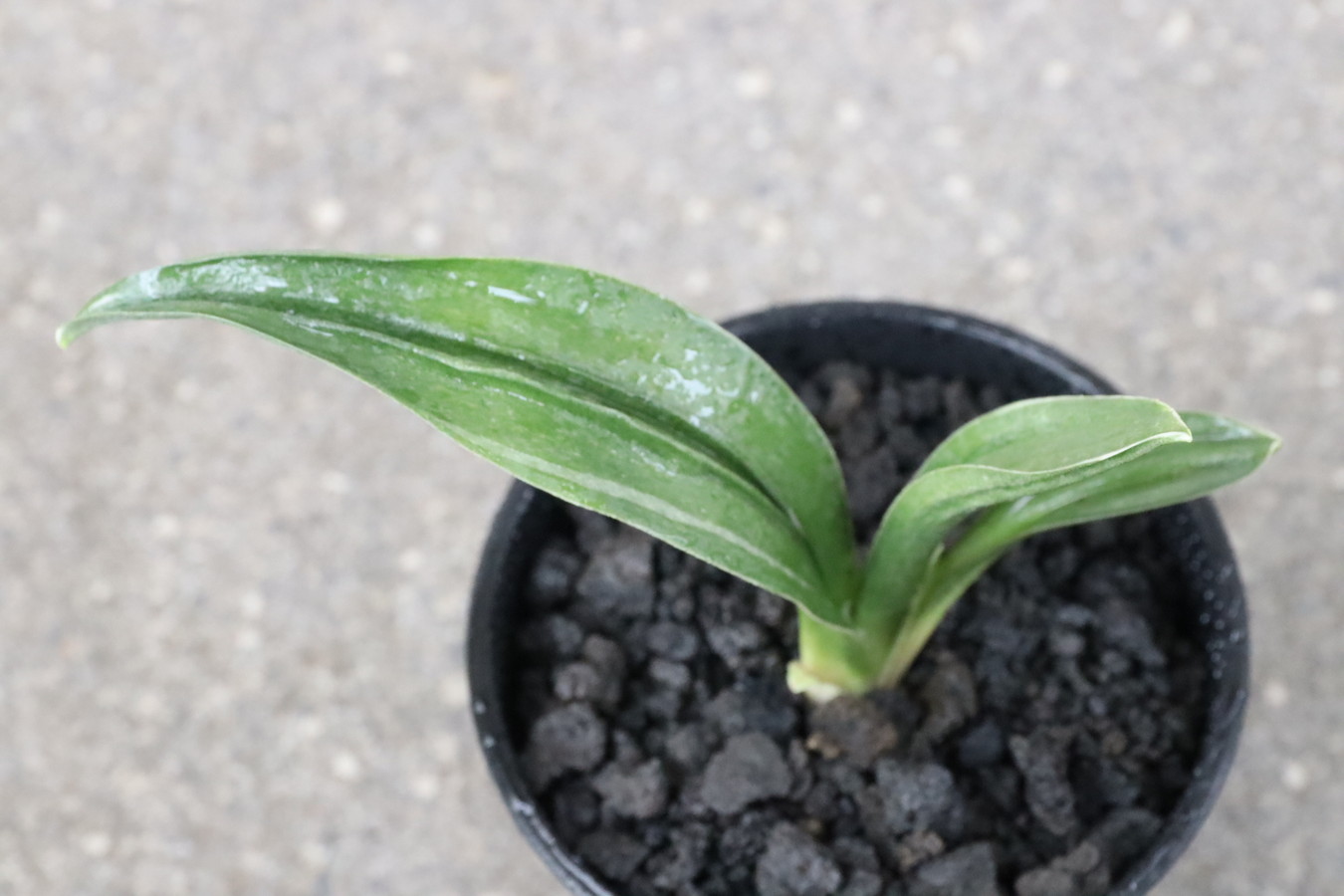 葉先が尖り、特徴をつかみやすい 初心者でも見分けがつく、ということが100年残る万年青、人気の出る万年青。プロでも名札がないとわからなくなってしまう万年青は表札万年青といって名札を売っているようなもの、というのが初代の信念です。錦麒麟や四君子、楊貴妃や新生殿が常に人気があるのは誰でもわかる万年青だから。