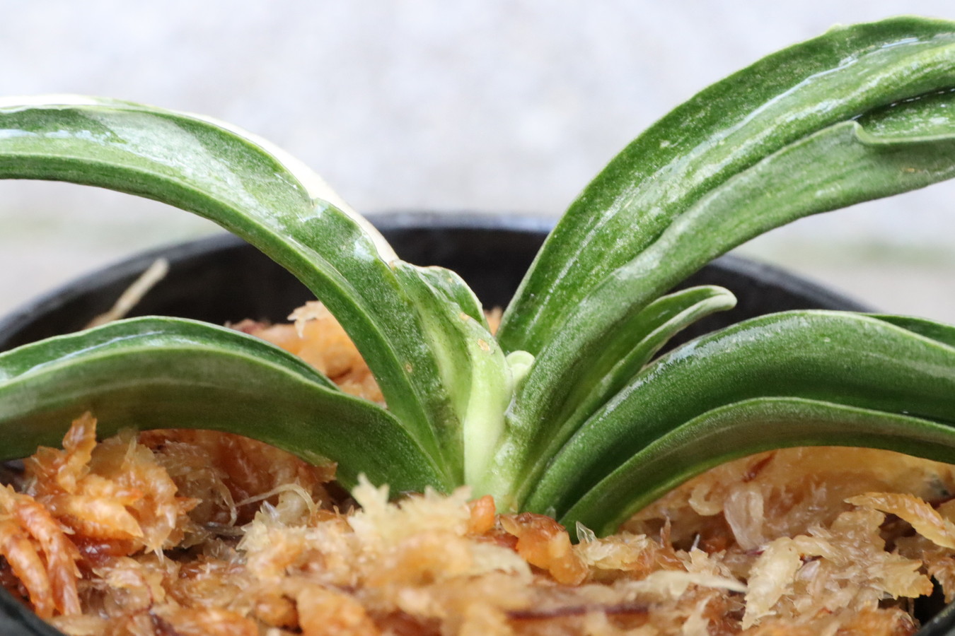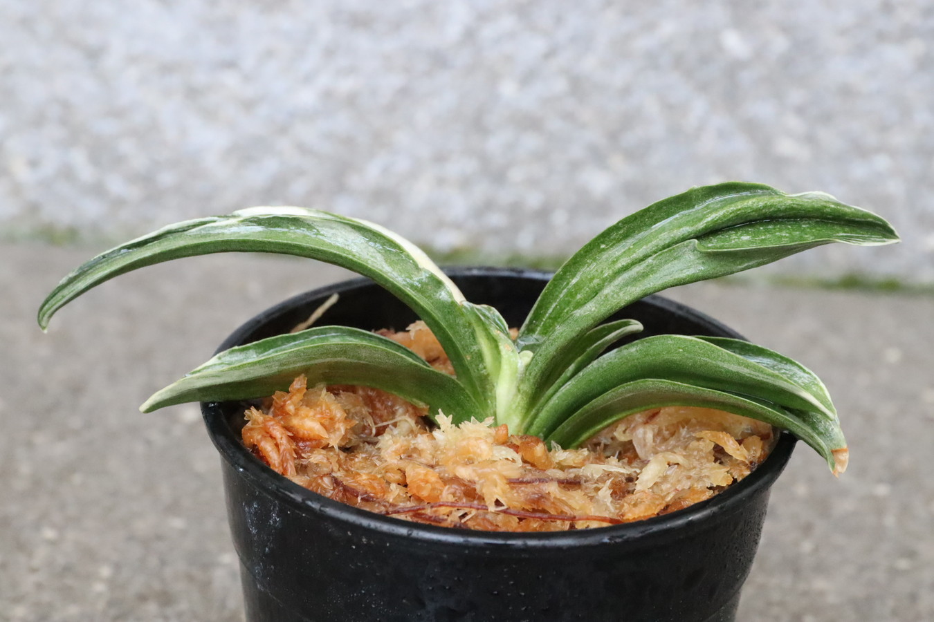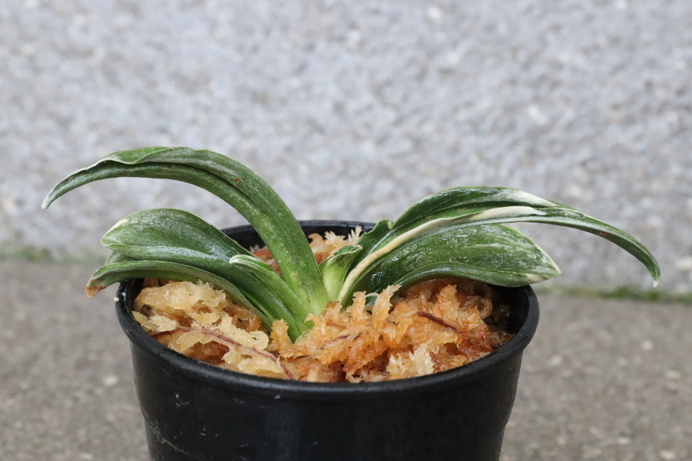 葉長6㎝、葉幅2㎝内外の中型種である。全般的に腰が低く、葉の中央部から急に折下げる姿は、独特の雰囲気を持っている。濃紺緑色の地合いは柔らかい味がある。葉芸も雅糸竜、折り熨斗、二面竜、剣葉、鈴虫剣など多彩である。黄白色の覆輪は、重厚な葉肉をより明瞭にしている。性質はやや弱く、施肥は弱めの方が良い。採光、繁殖は普通である。