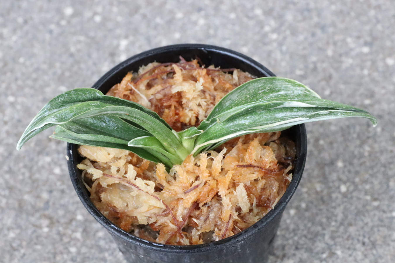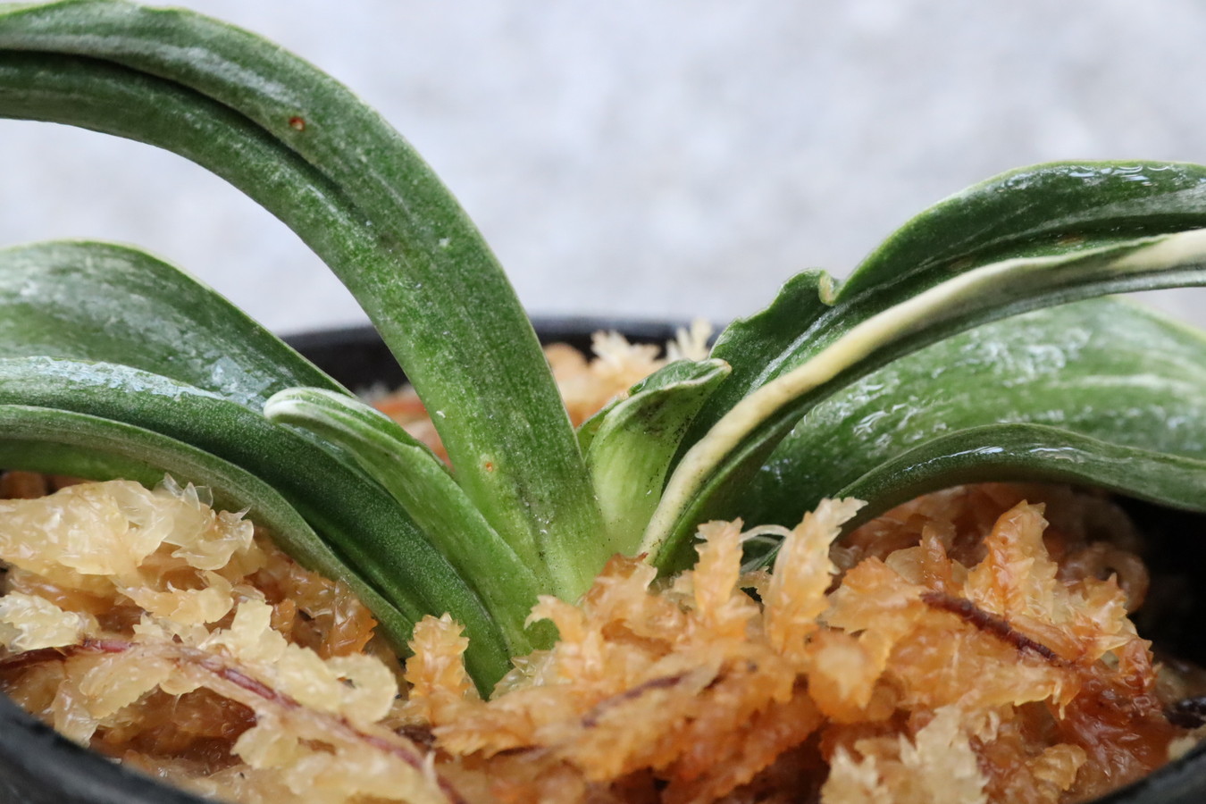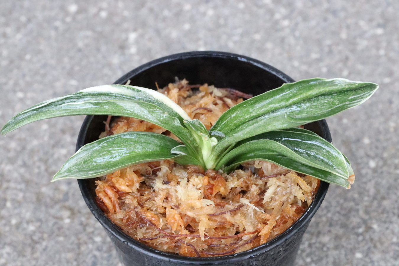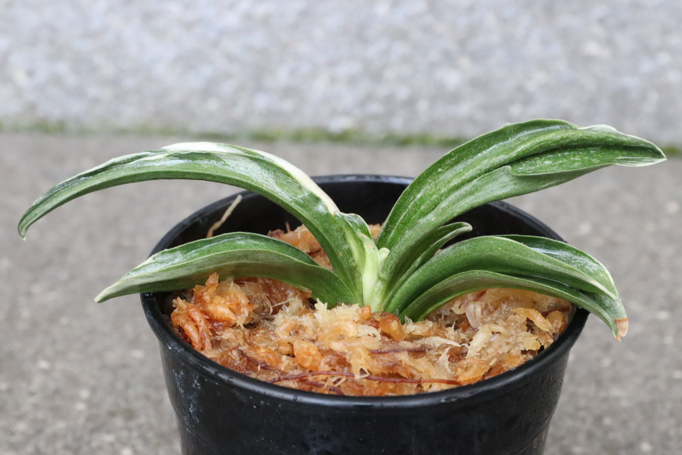 葉長6㎝、葉幅2㎝内外の中型種である。全般的に腰が低く、葉の中央部から急に折下げる姿は、独特の雰囲気を持っている。濃紺緑色の地合いは柔らかい味がある。葉芸も雅糸竜、折り熨斗、二面竜、剣葉、鈴虫剣など多彩である。黄白色の覆輪は、重厚な葉肉をより明瞭にしている。性質はやや弱く、施肥は弱めの方が良い。採光、繁殖は普通である。