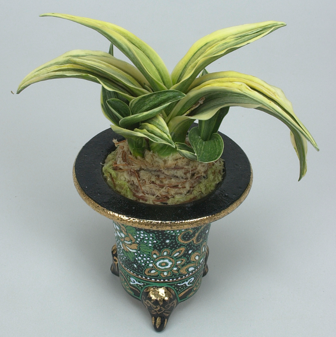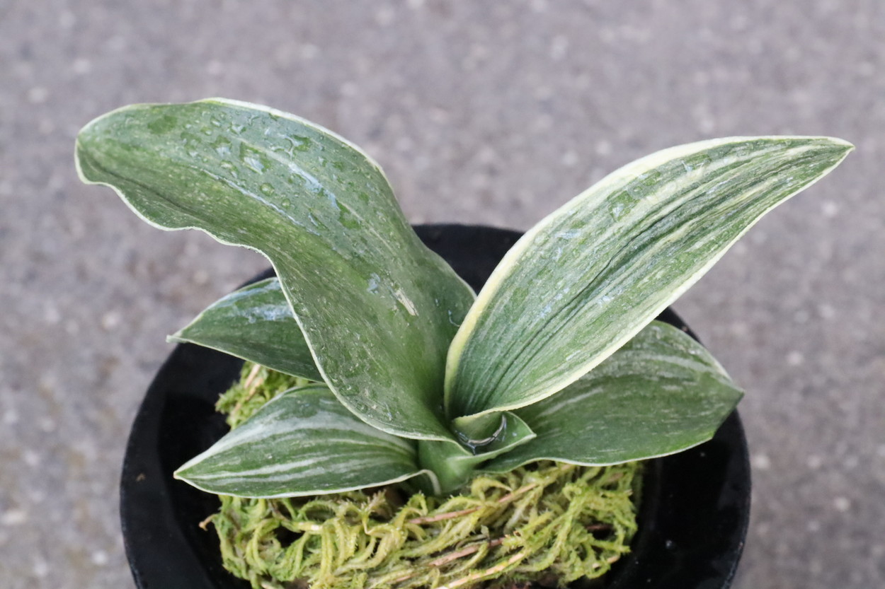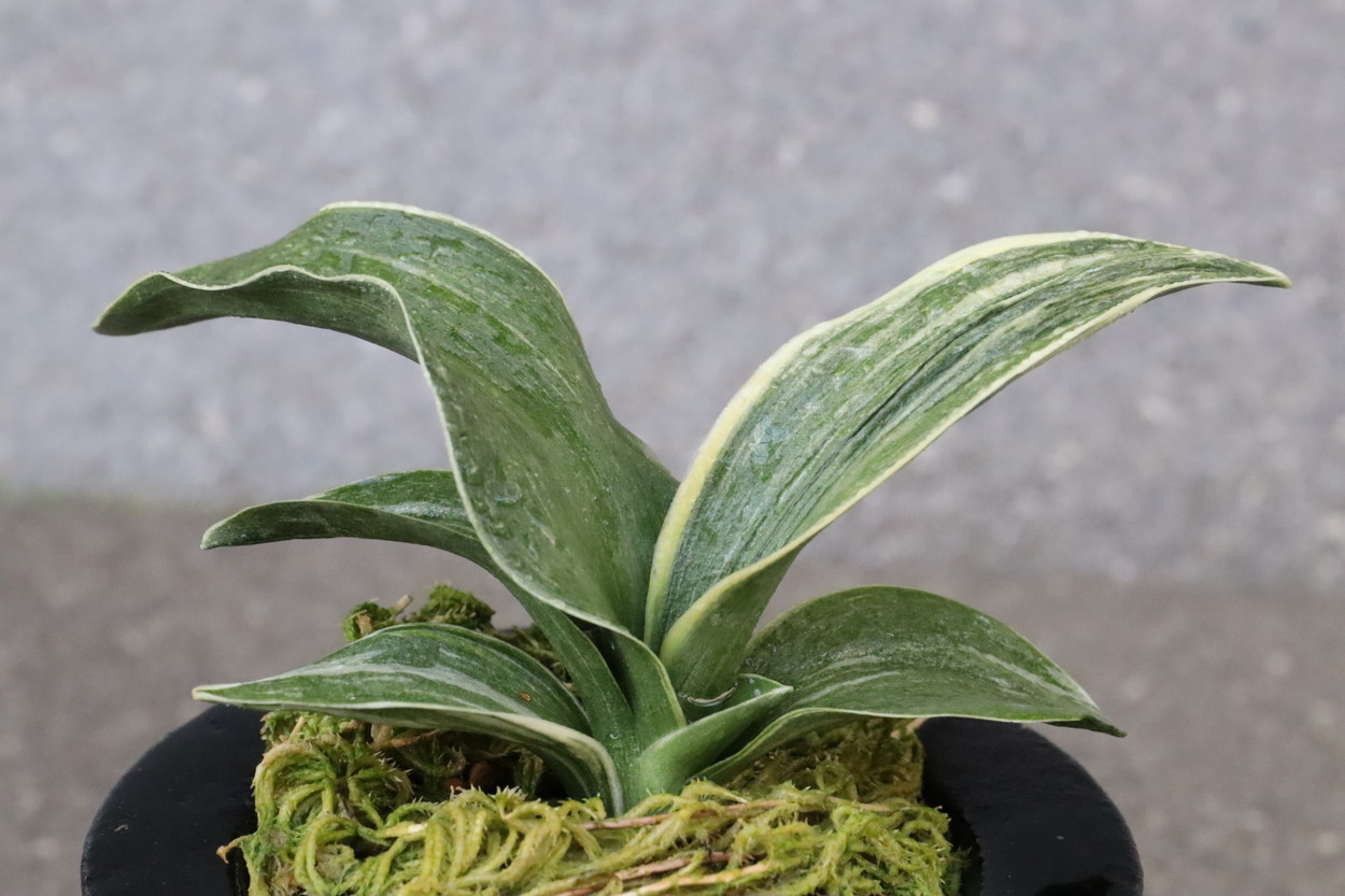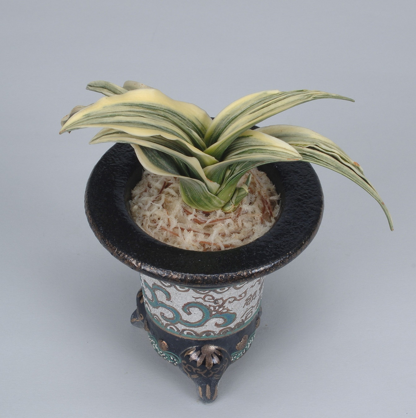 胡麻斑系の中型種。中立ち葉のバランスの良い葉姿に、鮮明な胡麻斑が美しく、深い白覆輪と見事に調和し、胡麻羅紗の魅力を最大限に生かした代表品種。低い雅糸竜に甲竜、跳ね竜、玉竜などの葉芸は多彩である。性質は普通で、子上げが良く、繁殖は良い。採光は、やや強めにするほうが胡麻斑が鮮明になり、葉芸も強くなる。施肥は中程度が良い。