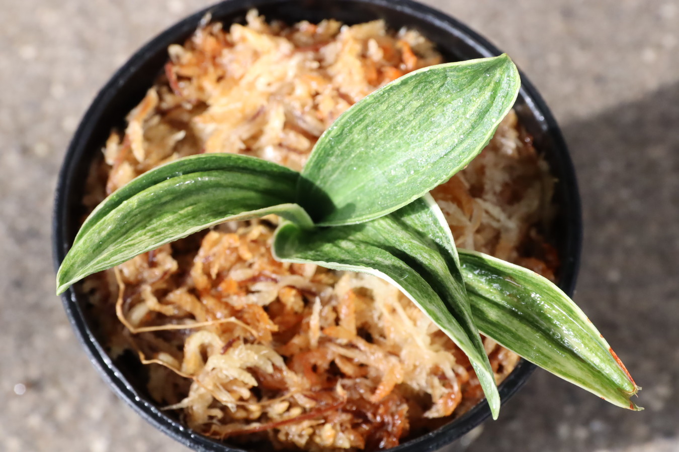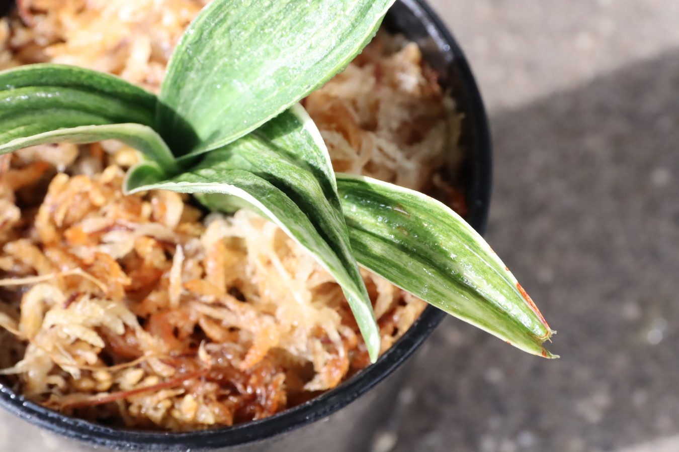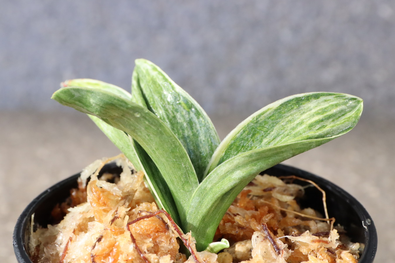 胡麻斑系の中型種。中立ち葉のバランスの良い葉姿に、鮮明な胡麻斑が美しく、深い白覆輪と見事に調和し、胡麻羅紗の魅力を最大限に生かした代表品種。低い雅糸竜に甲竜、跳ね竜、玉竜などの葉芸は多彩である。性質は普通で、子上げが良く、繁殖は良い。採光は、やや強めにするほうが胡麻斑が鮮明になり、葉芸も強くなる。施肥は中程度が良い。