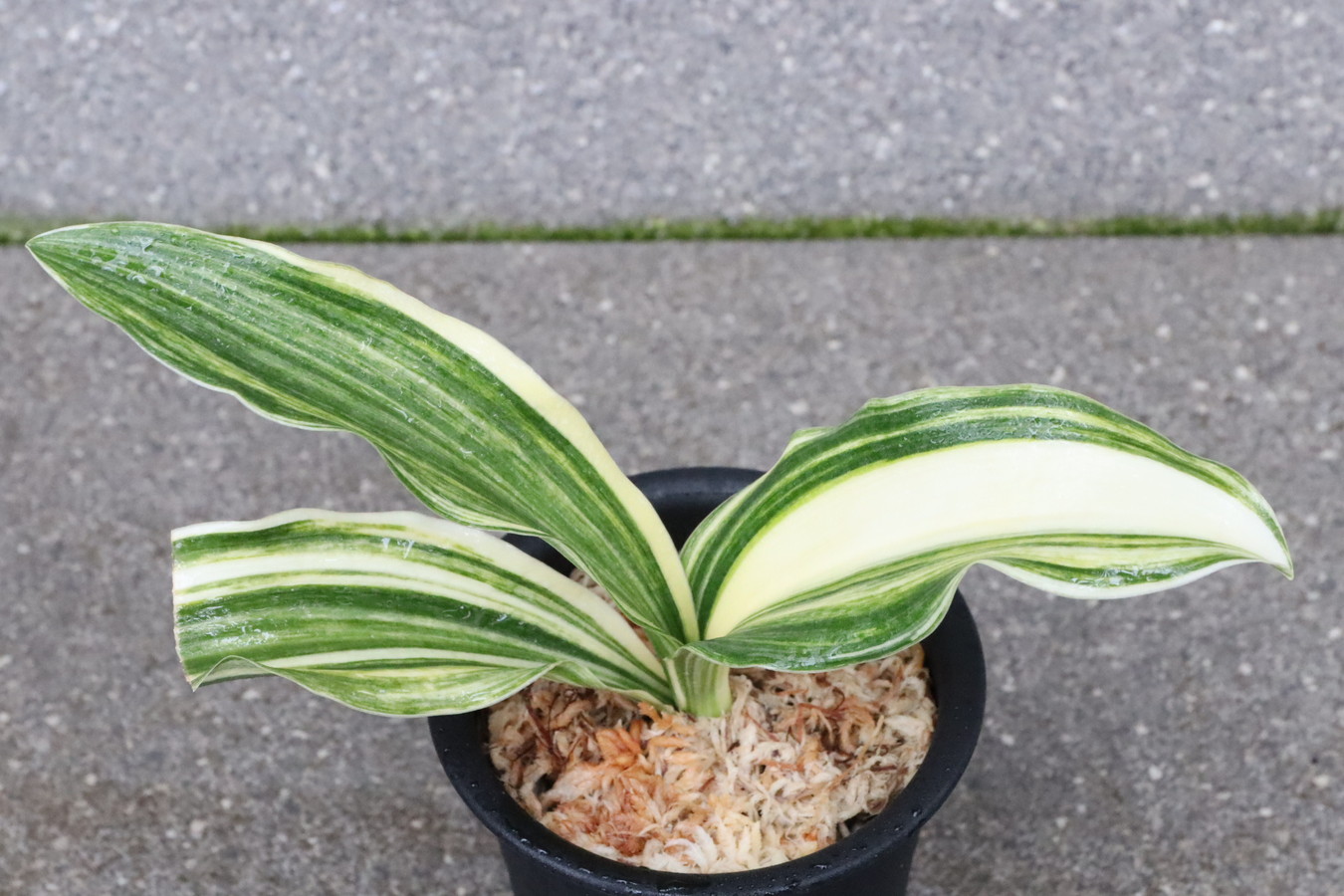 7235,褥錦(しとねにしき) 縞覆輪 縞最上!【小苗特価!根少ない特価!はきずはきれ多い大特価!!】※春から秋は生長期なので姿は変わっていきます