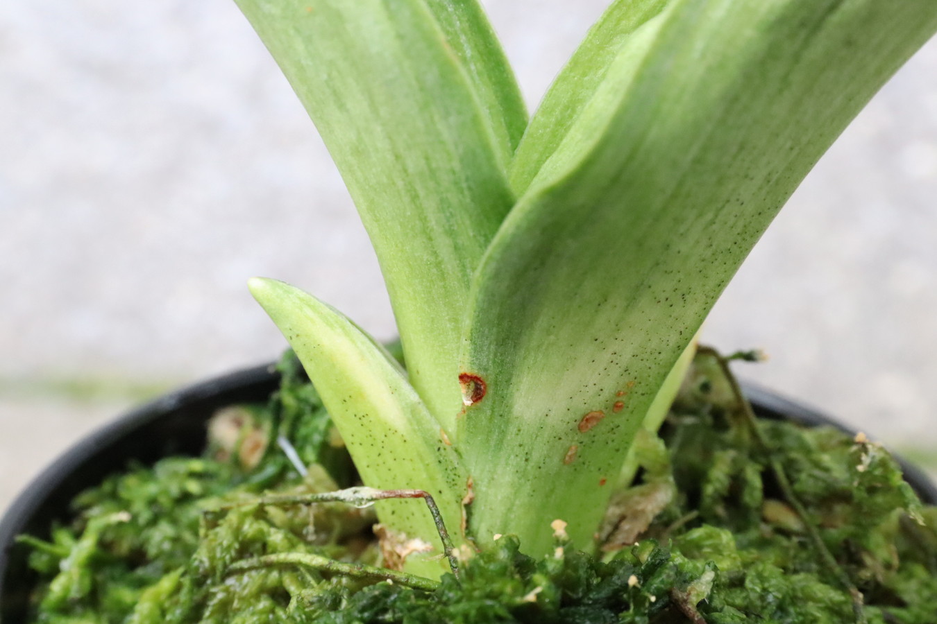 江戸時代の紅流しから作出されたといわれ、他の万年青にはない変化をみせる。
