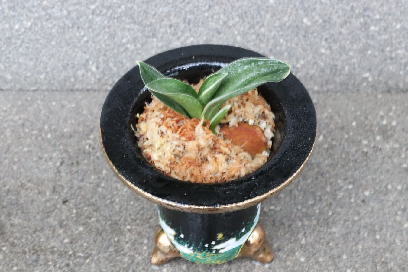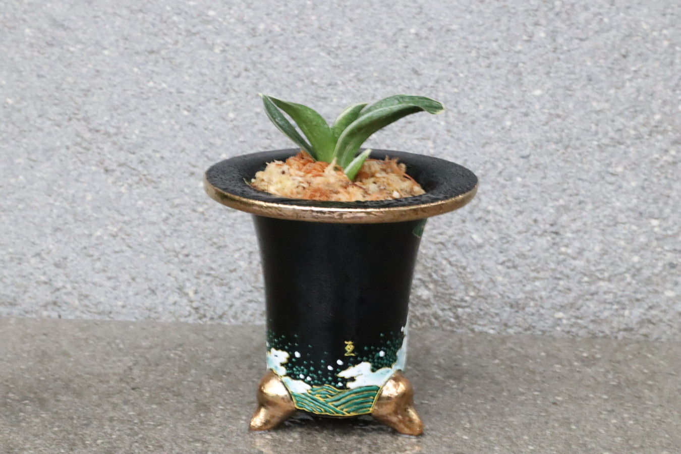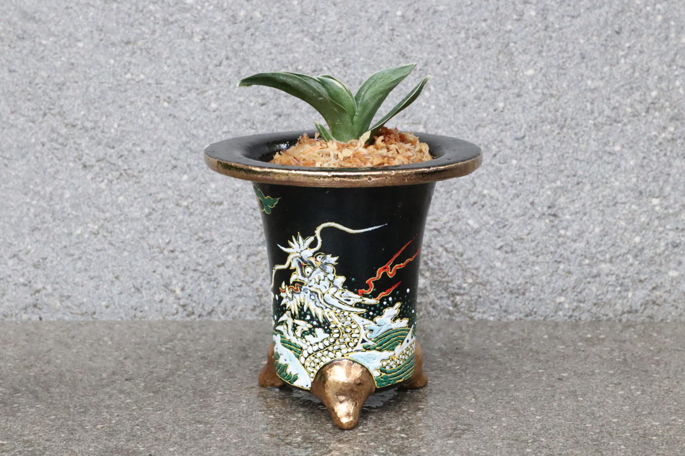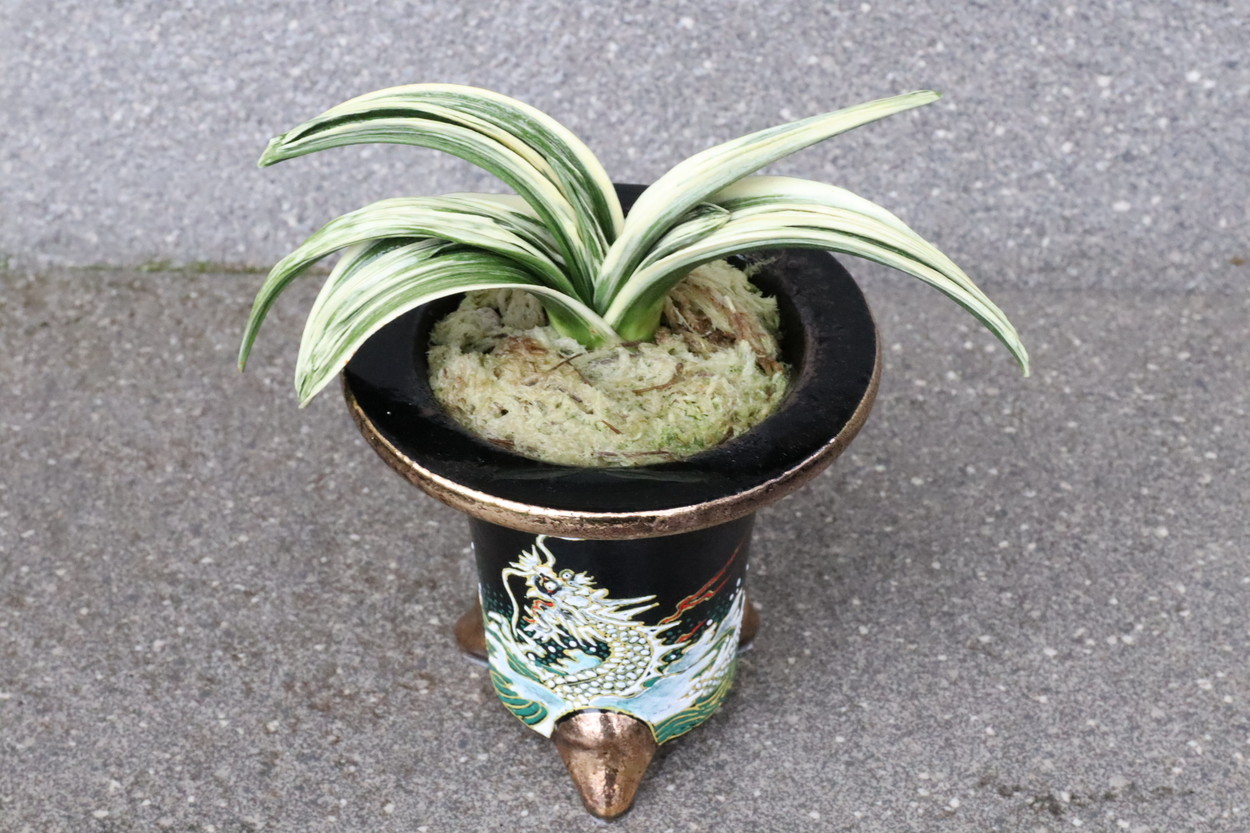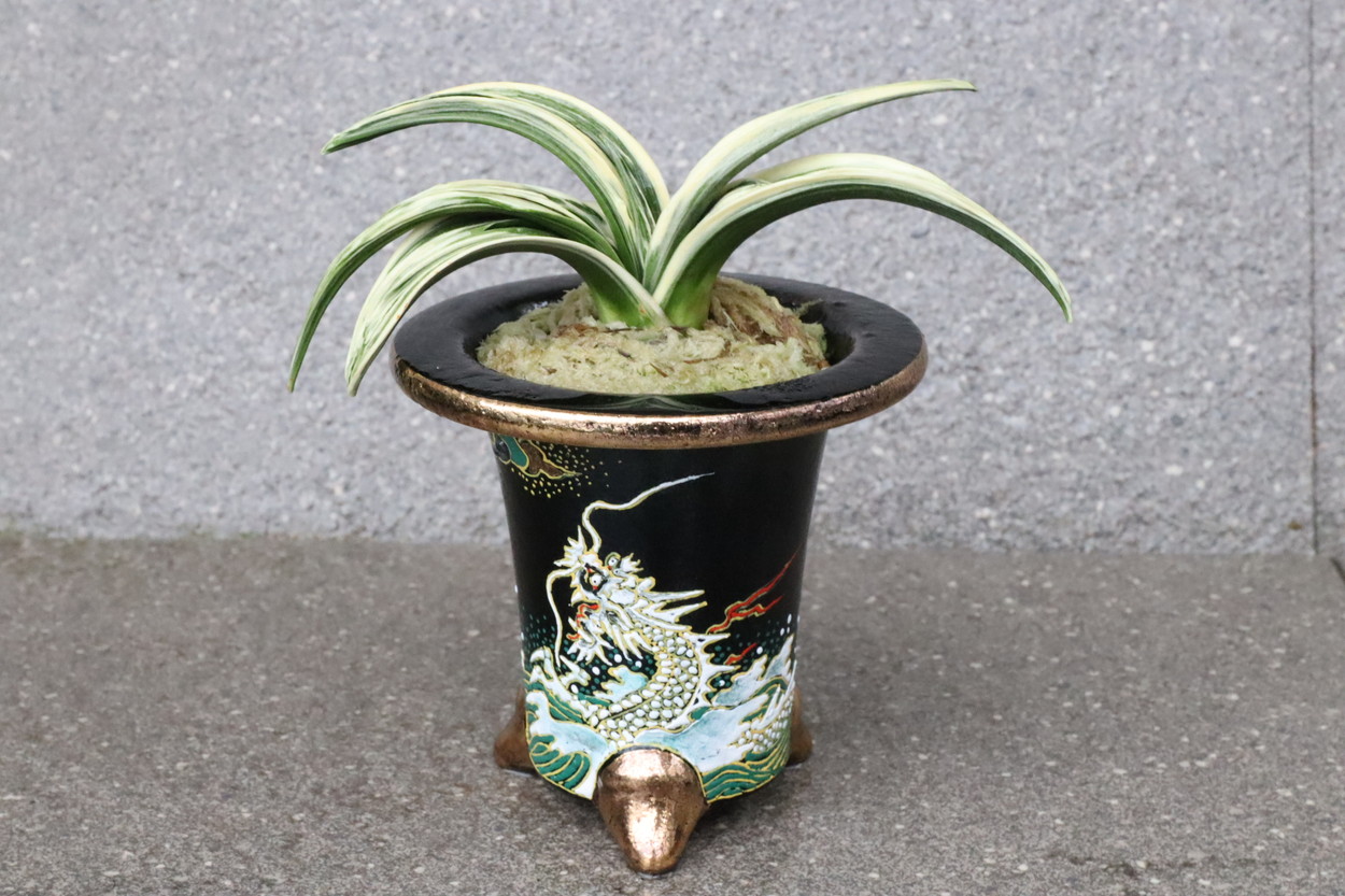 鉢は縁起良い【昇り龍】となっていて、昇り龍のように運気が上がる、という願いが込められています。万年青の名前が万年、青々と繁栄していく様を万年青というように、非常に縁起良いお祝いの贈り物や新築祝い、記念の品です。