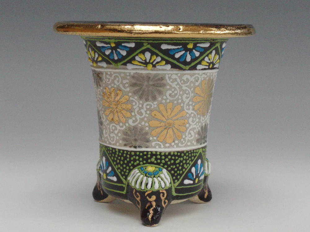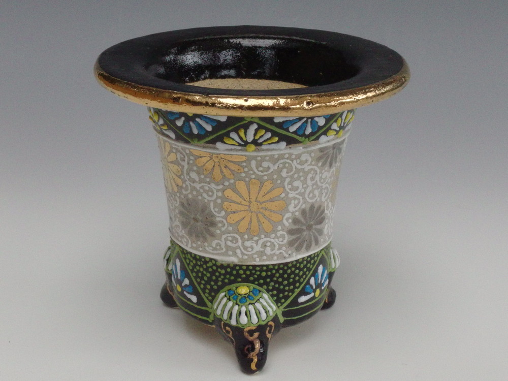 おもと鉢 利山・手島???????? 現代鉢作家 利山工房のイッチン