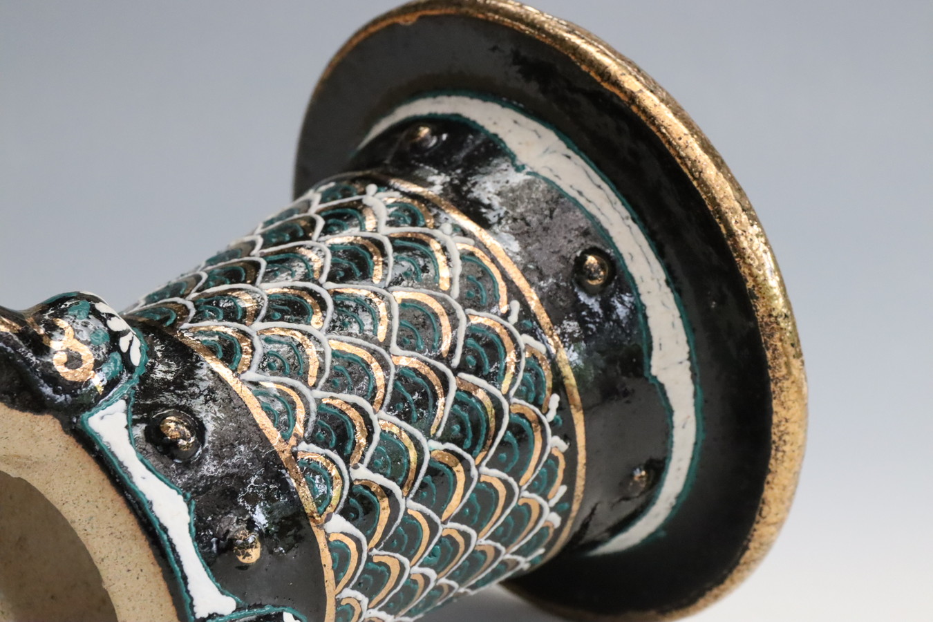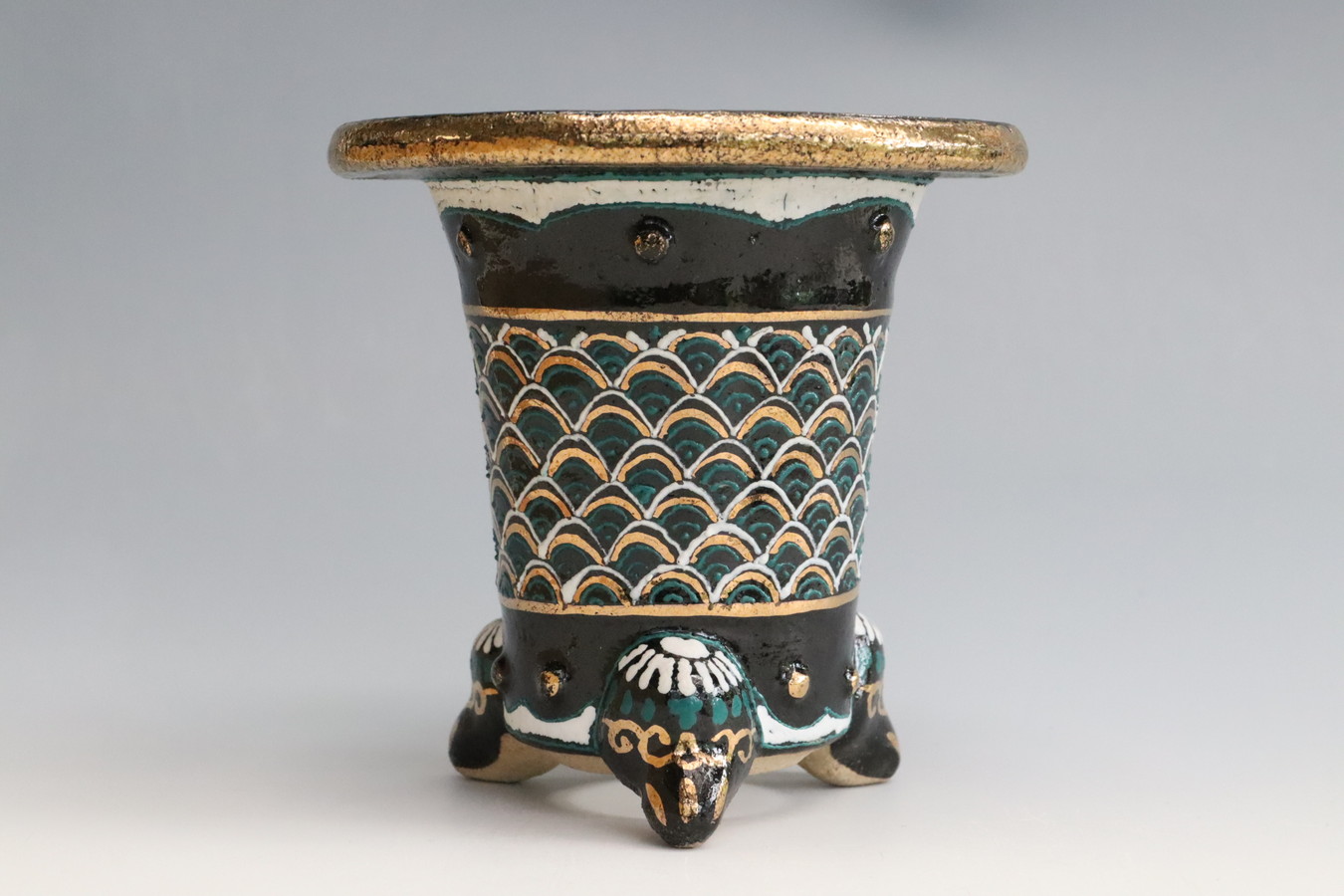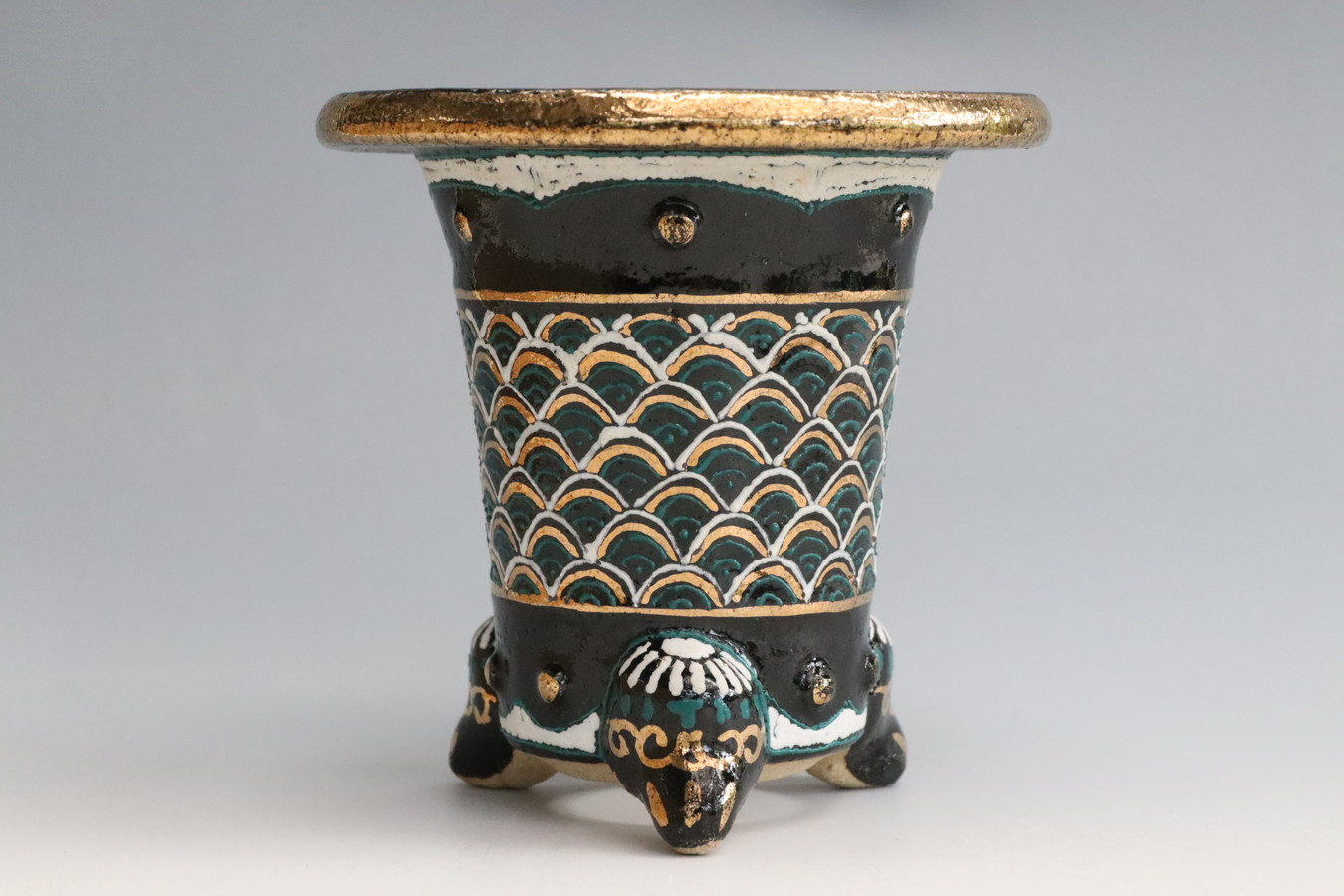 3139,太鼓胴 金青海波楽鉢 外径約11.6cm 中古?
