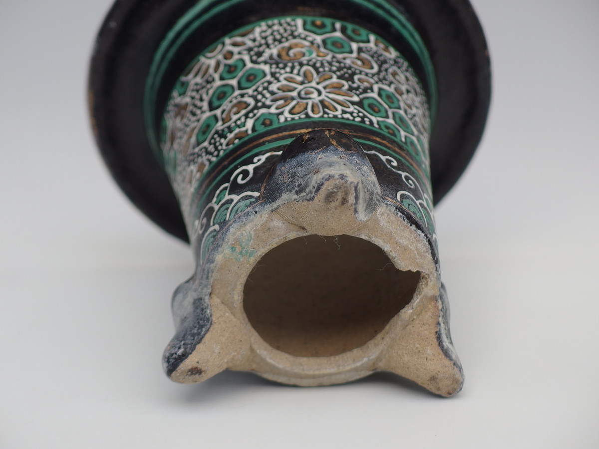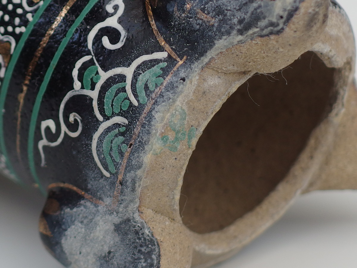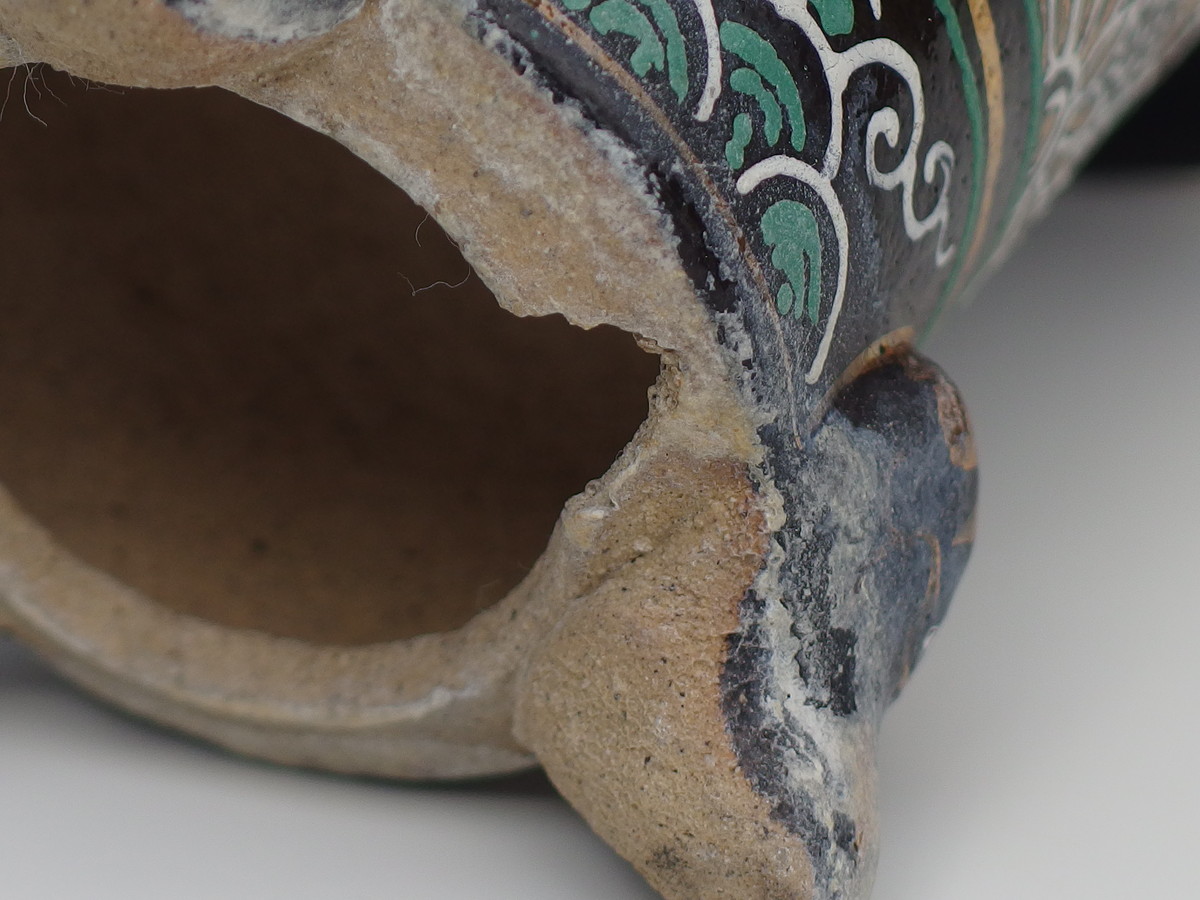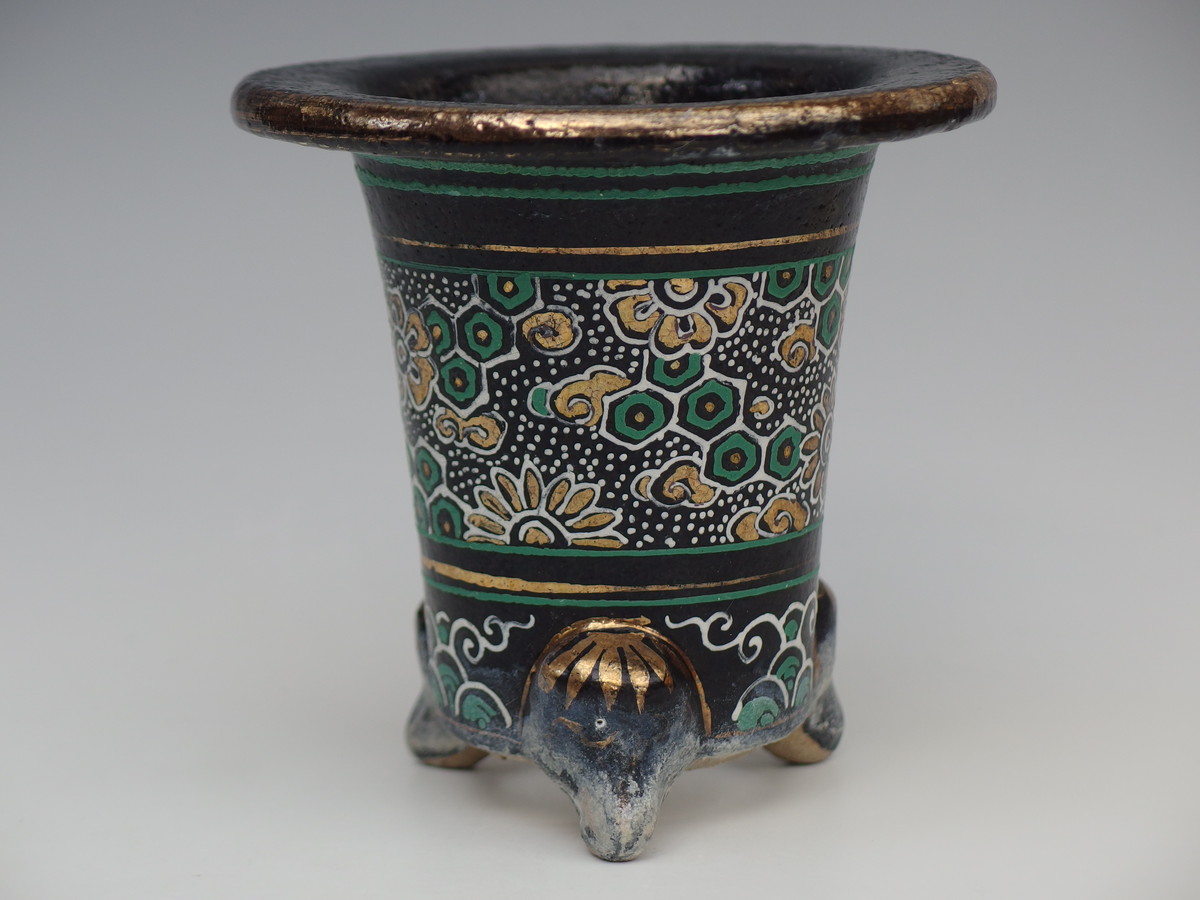 2272, 古代万年青鉢写し楽鉢 外形約10.5cm 中古 一水絵 カケ 送料無料